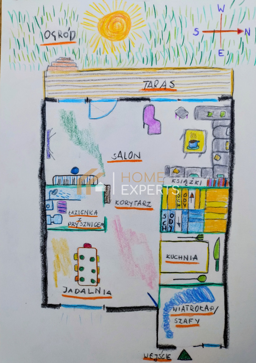 Parter: wiatrołap z oknem i szafami na odzież i obuwie | funkcjonalna kuchnia | jadalnia | korytarz | łazienka z prysznicem | salon z wyjściem na taras i słoneczny ogród.