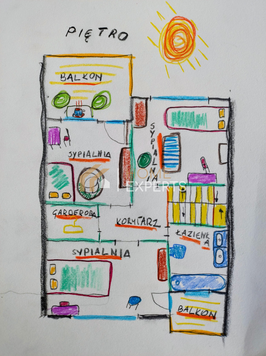Piętro: korytarz | sypialnia dziecięca | sypialnia dziecięca z balkonem | główna sypialnia z balkonem | łazienka z wanną | garderoba