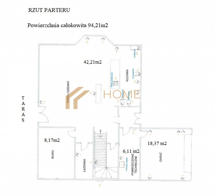 PARTER - powierzchnia całkowita (ok. 94,21 m²):