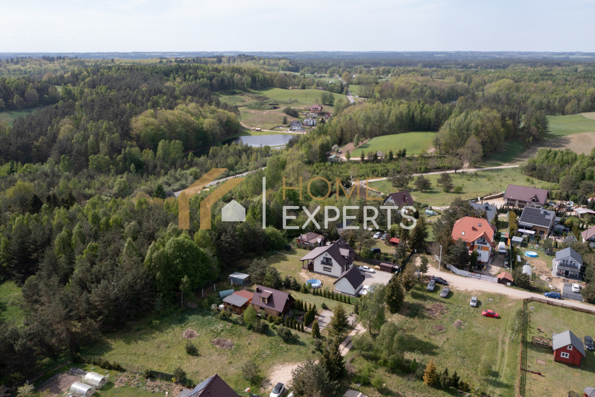 Sąsiedztwo: kameralna zabudowa domów jednorodzinnych, urokliwe budynki w kaszubskim stylu.