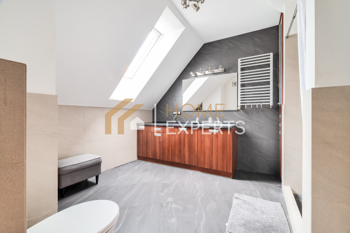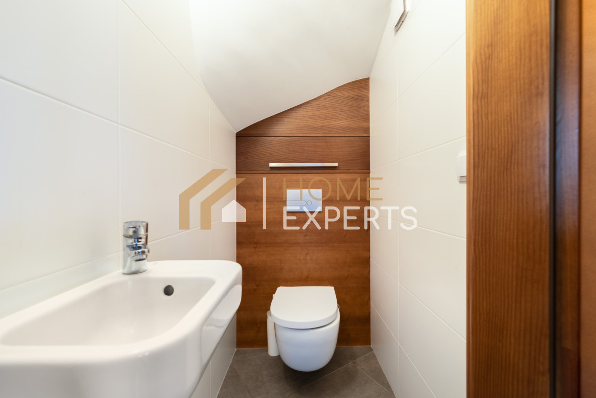 Ponadto w bryle budynku znajduje się garaż z bramą automatyczną na pilota, pomieszczenie gospodarcze ( piwnica). Na posesji znajduje się miejsce parkingowe przed garażem.