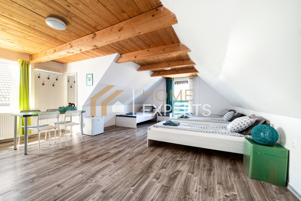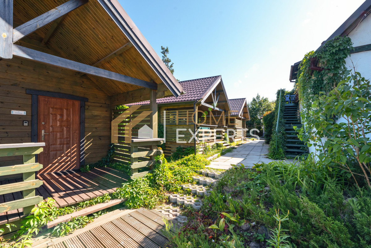 NA SPRZEDAŻ PENSJONAT Dwa główne budynki mają łączną powierzchnię użytkową 433m2. 8 domków rekreacyjnych 35 m2 każdy i jeden domek służbowy.