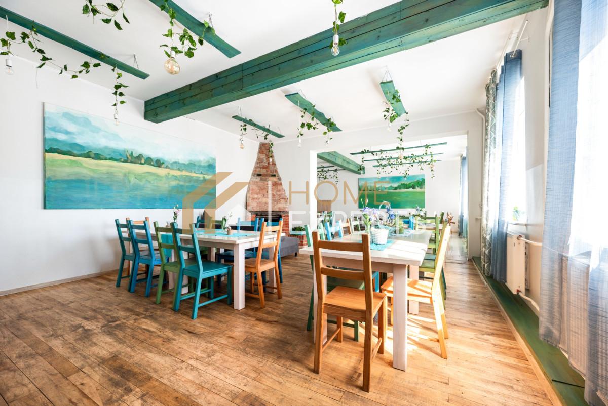 ► Restauracja na 75 osób plus ogród na dowolny cel (2 sale konsumpcyjne ok. 60 i 120m2 z łazienką dla gości) wraz z profesjonalnie wyposażoną kuchnią ze stali nierdzewnej. Allon 250mkw.