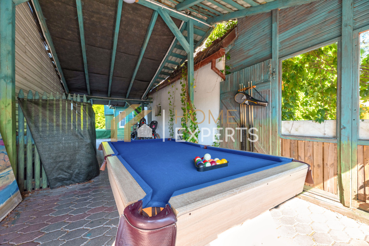 ► Zadaszony stół bilardowy i do gry w piłkarzyki.