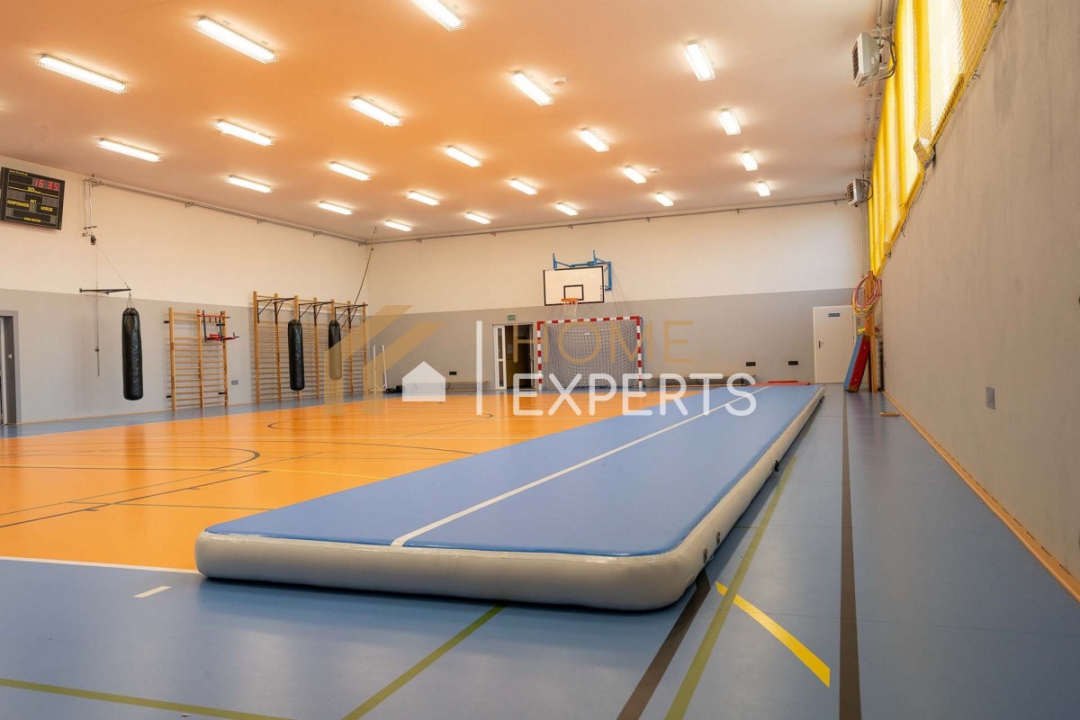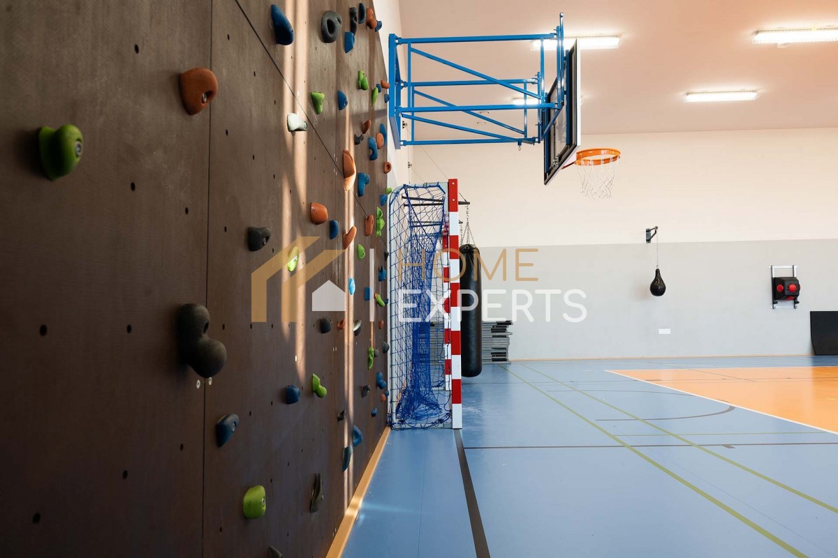 Nieruchomość posiada infrastrukturę sportowo-rekreacyjną: boisko trawiaste, salę gimnastyczną, siłownię, wielofunkcyjną salę, ścianę wspinaczkową, saunę, plac zabaw.