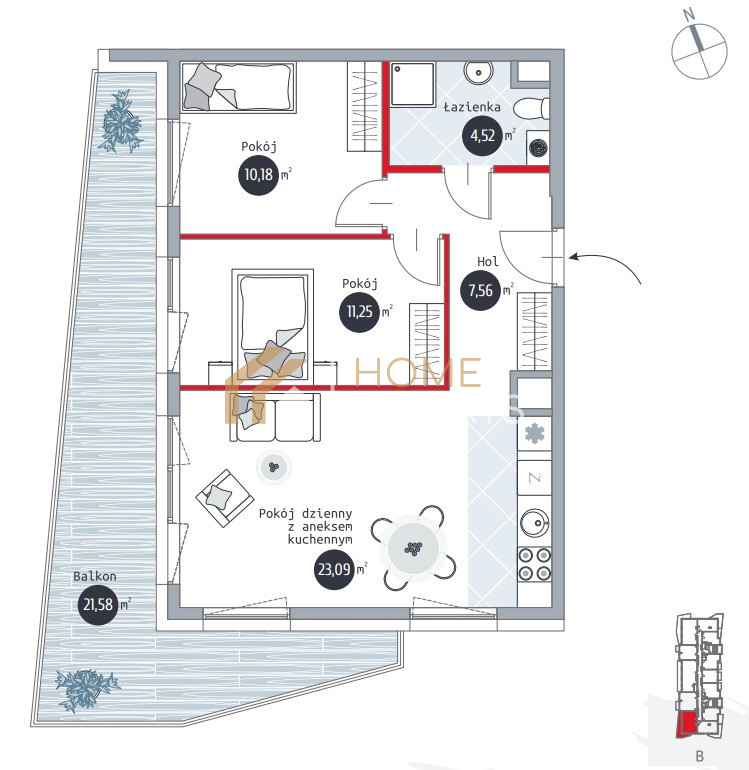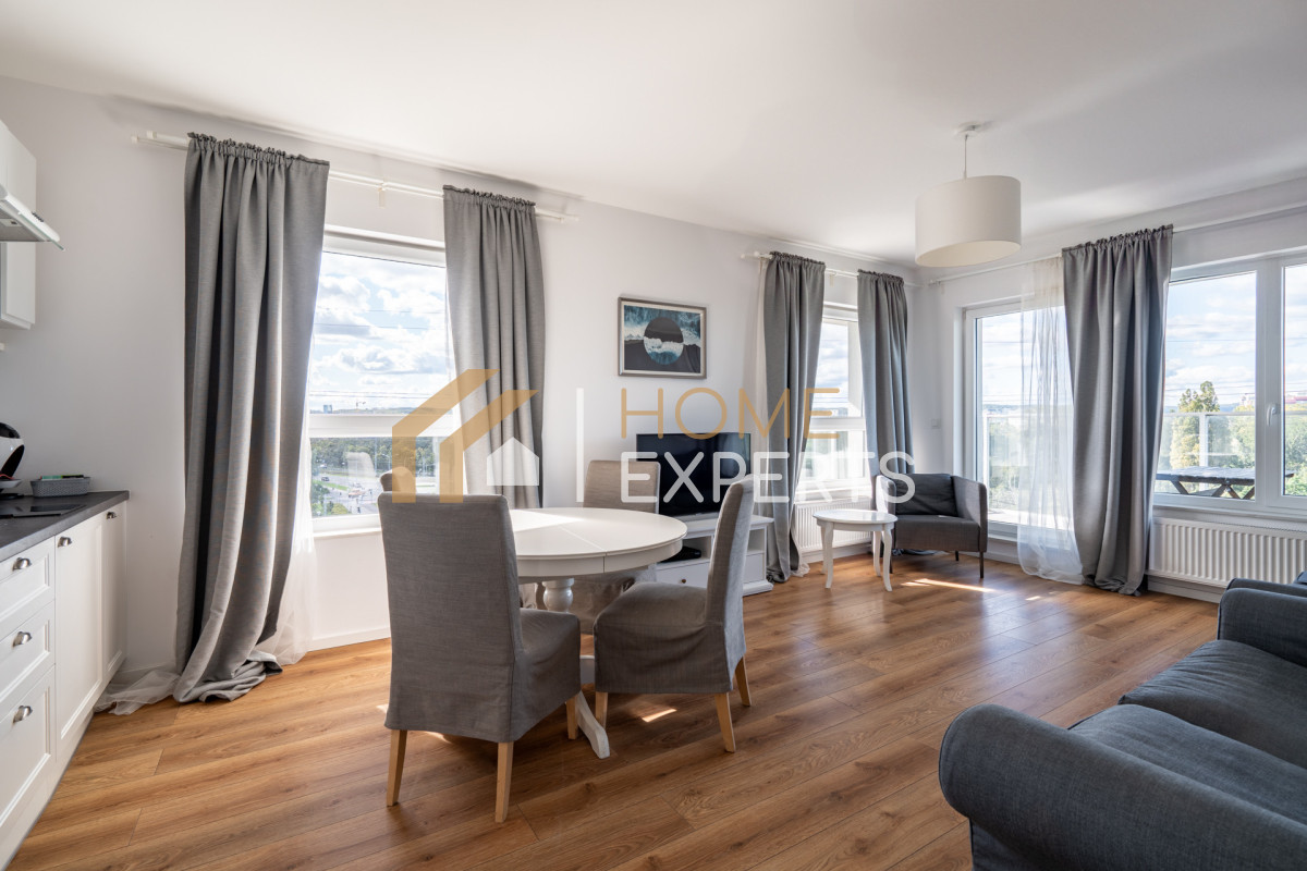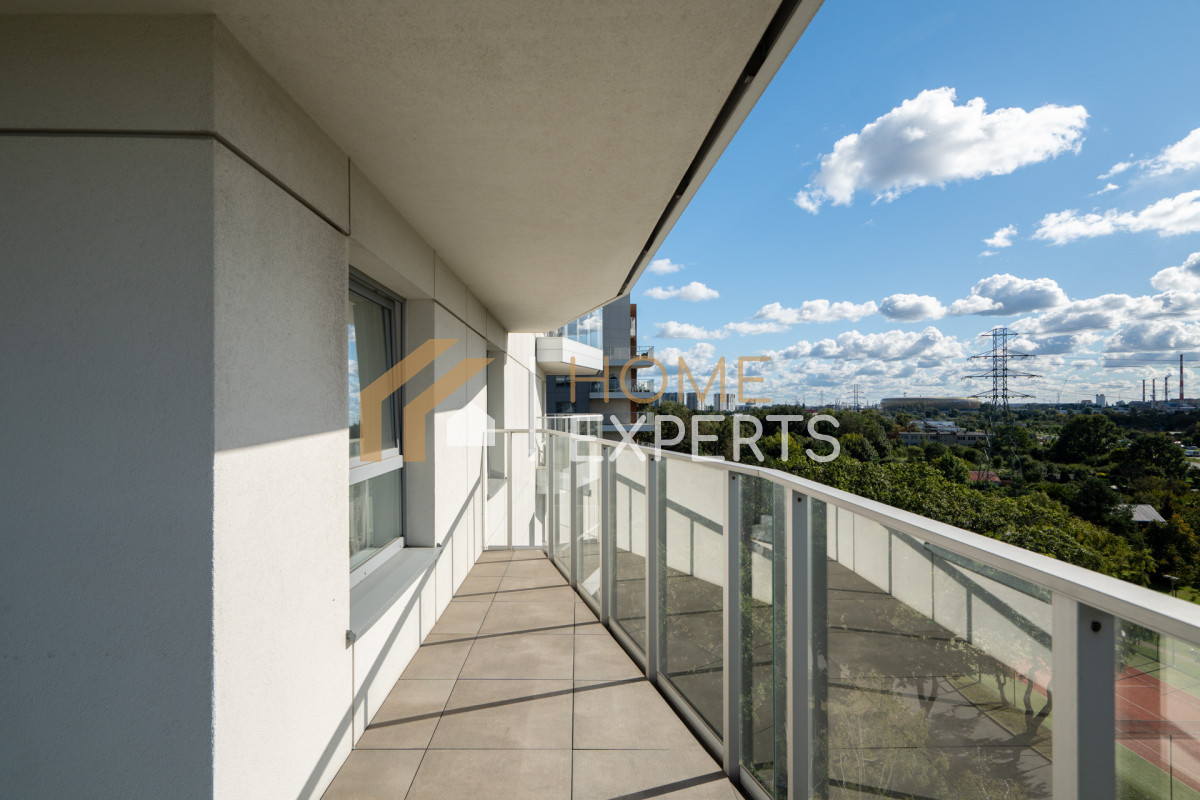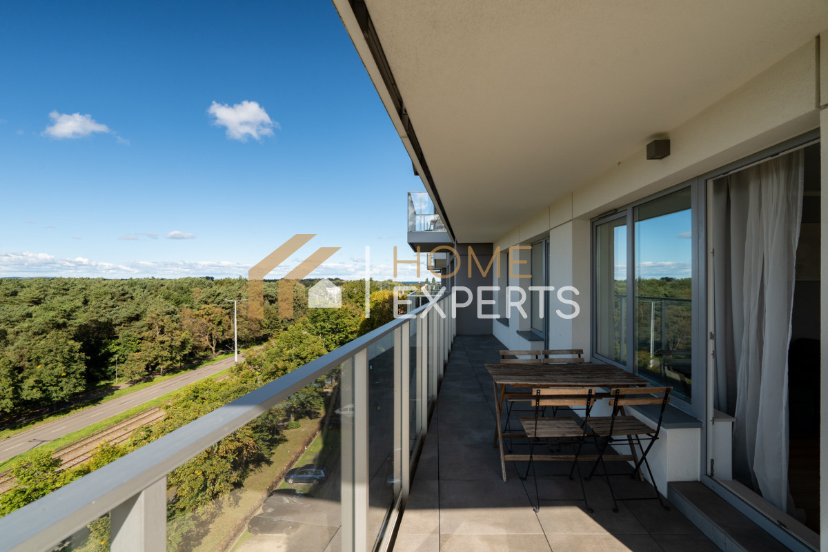 - przestronny salon z aneksem kuchennym i wyjściem na bardzo duży, narożny balkon (21,58 m2) ,