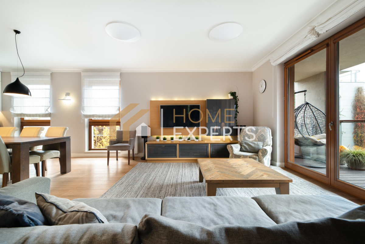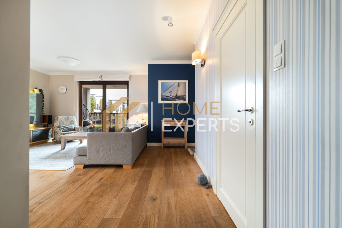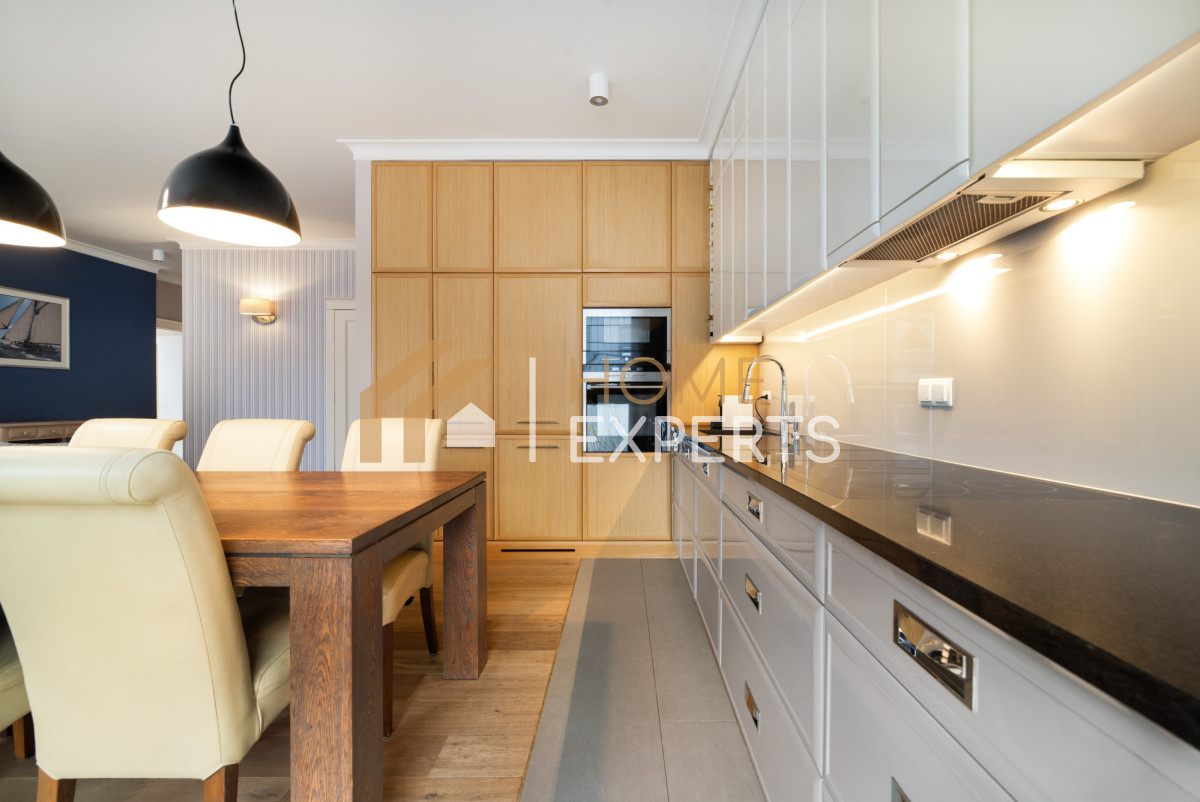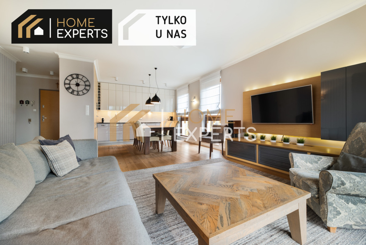 - Wysoki standard wykończenia mieszkania - dębowe podłogi, kamienne blaty, podgrzewana podłoga w łazience,