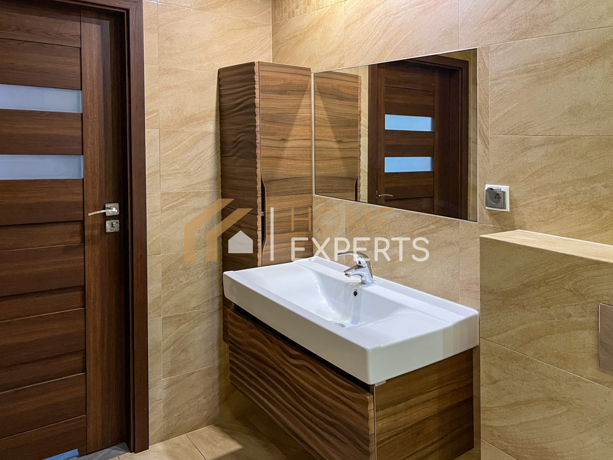 Pomieszczenia są w pełni umeblowane i wyposażone w niezbędny sprzęt AGD/RTV. Wszystkie zabudowy, ściany i podłogi wykonane są z wysokiej jakości materiałów, co niewątpliwie stanowi wartość dodaną tej nieruchomości. W oknach są zamontowane rolety antywłamaniowe.
