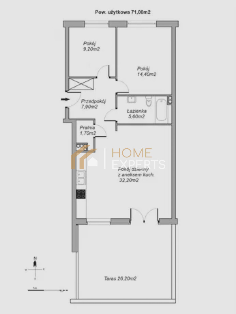 Mieszkanie jest dwustronne. Ekspozycja okien na stronę północną oraz południową (taras).