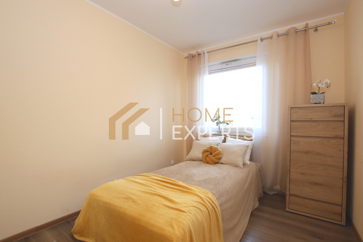 Mieszkanie dwustronne, pokój dzienny i balkon od strony południowo-zachodniej, sypialnie od strony północno-wschodniej.