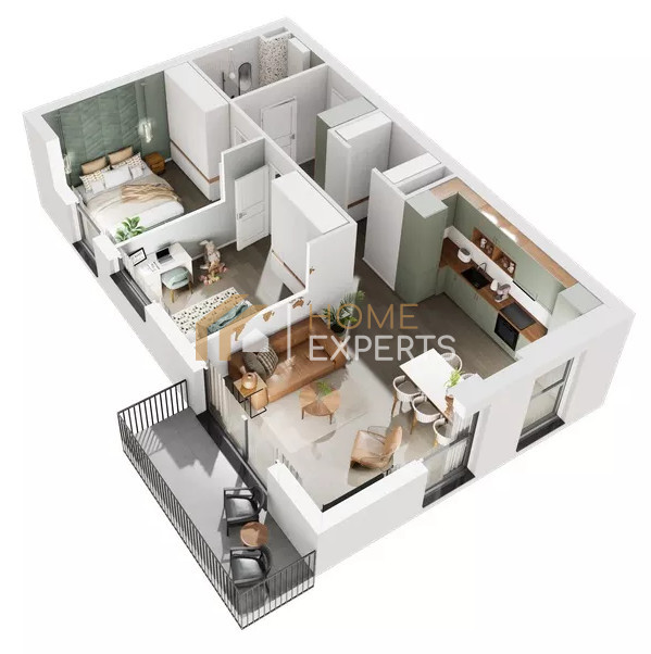 Mieszkanie składa się z przestronnego salonu z aneksem kuchennym i wyjściem na balkon, dwóch oddzielnych sypialni, łazienki oraz funkcjonalnego przedpokoju. Układ pomieszczeń jest bardzo komfortowy i doskonale sprawdzi się dla rodziny z dziećmi oraz osób posiadających zwierzęta.