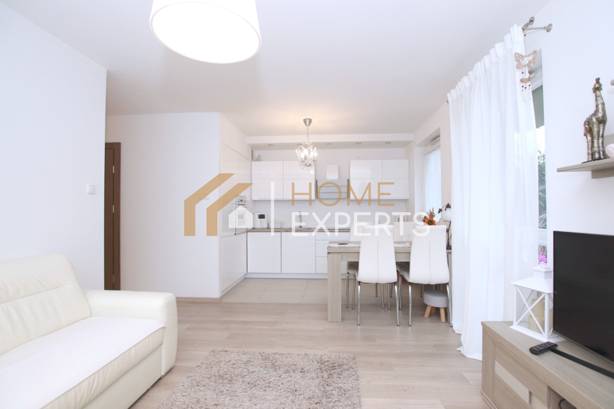 Nowoczesne, doskonale utrzymane 2 pokojowe mieszkanie na parterze w niskim budynku z 2012 roku, znajdujące się na zamkniętym osiedlu z ochroną.