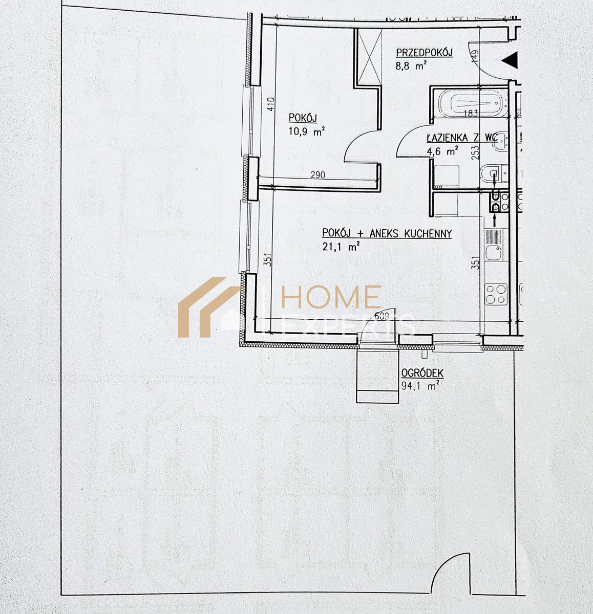 - pokoju dziennego z aneksem kuchennym, ponad 21m2