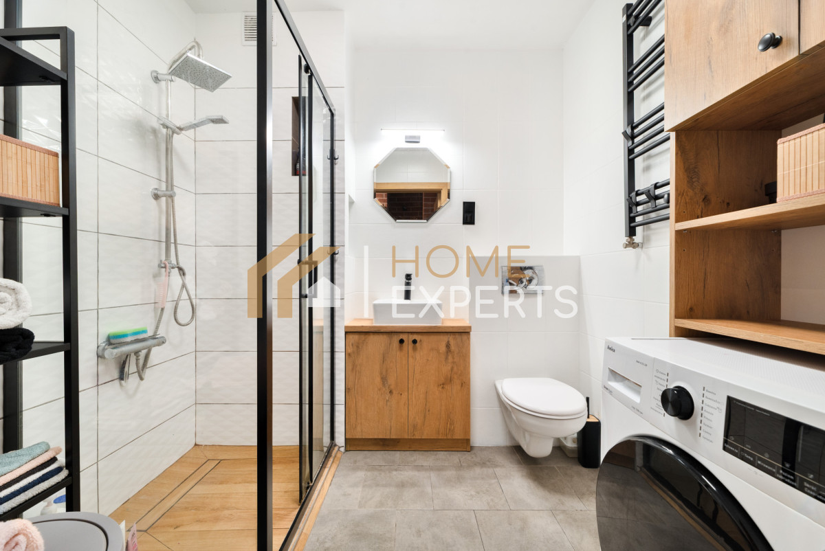 Pomieszczenia są w pełni umeblowane i wyposażone w niezbędny sprzęt AGD/RTV. Wszystkie zabudowy, ściany i podłogi wykonane są z wysokiej jakości materiałów, co niewątpliwie stanowi wartość dodaną tej nieruchomości. W oknach są zamontowane antywłamaniowe rolety sterowane radiowo z pilota. Przy ścianach zewnętrznych i oknach jest rozmieszczone regulowane ogrzewanie podłogowe.