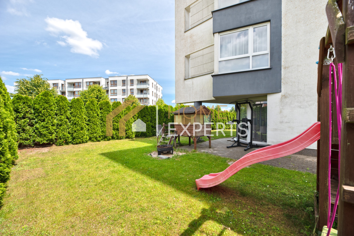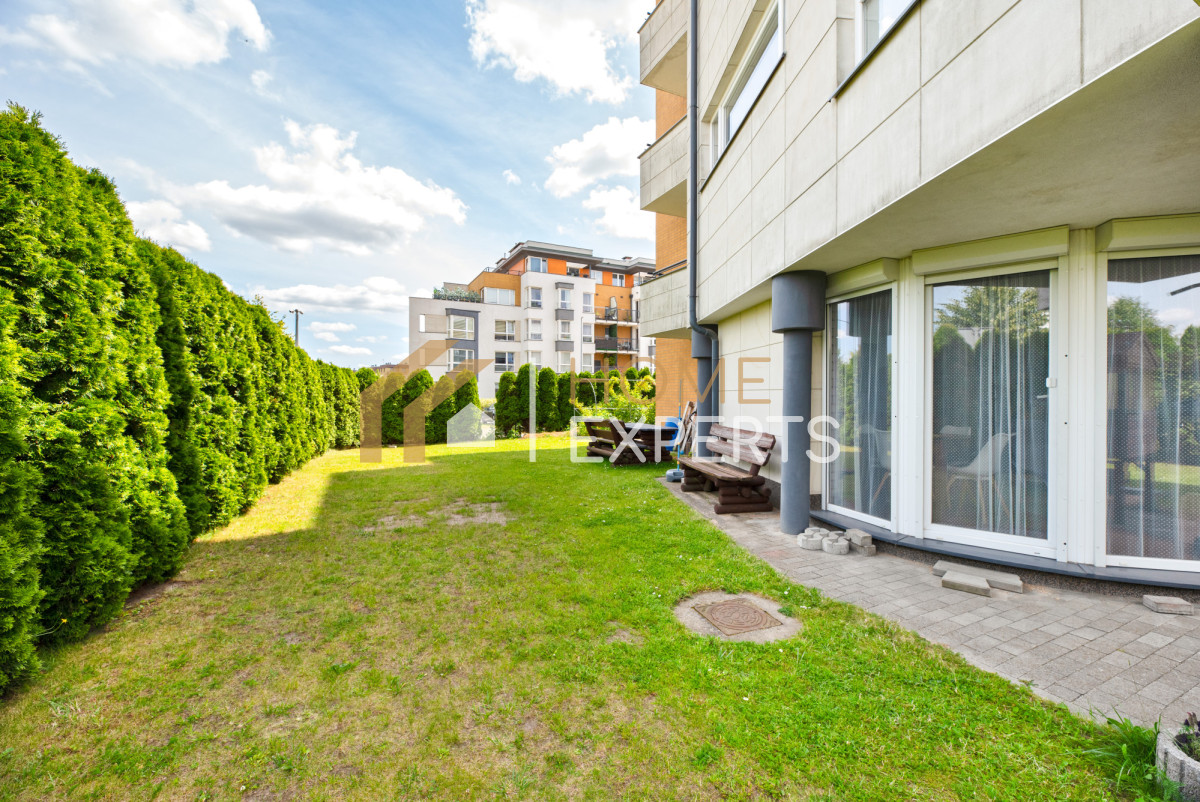 Niewątpliwym atutem tej nieruchomości jest bardzo duży, otaczający mieszkanie ogród o powierzchni 277,3 m2 ! Wokół niego jest posadzonych ok. 80 tui, co zapewnia poczucie bezpieczeństwa i prywatności.