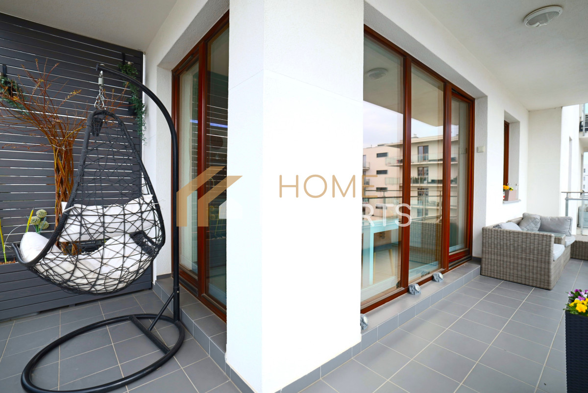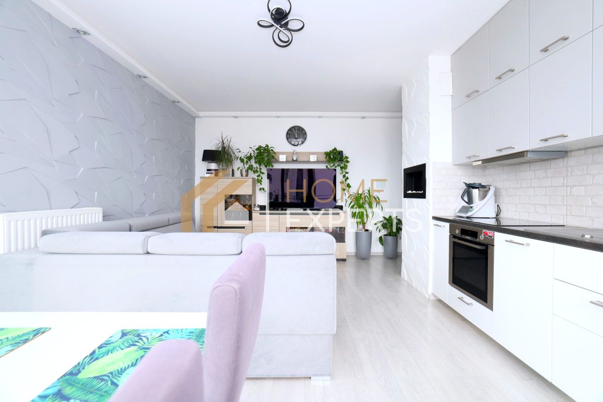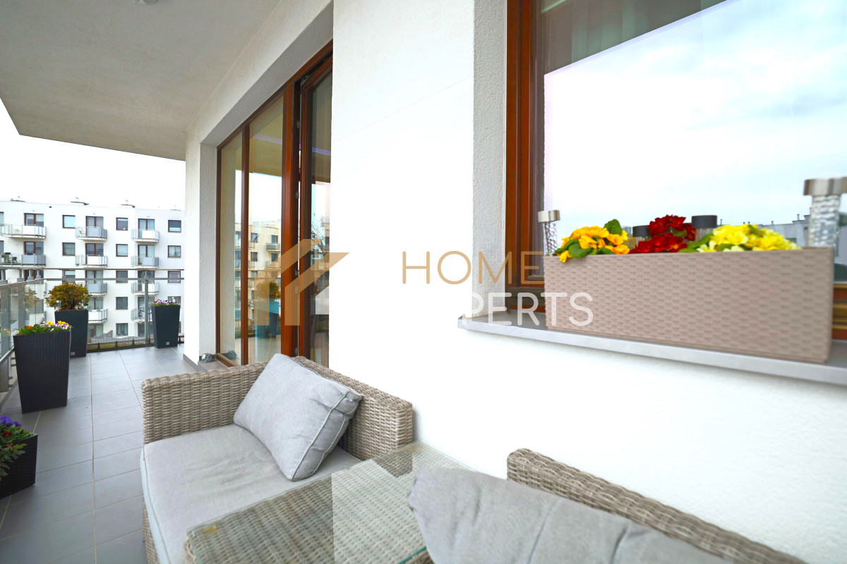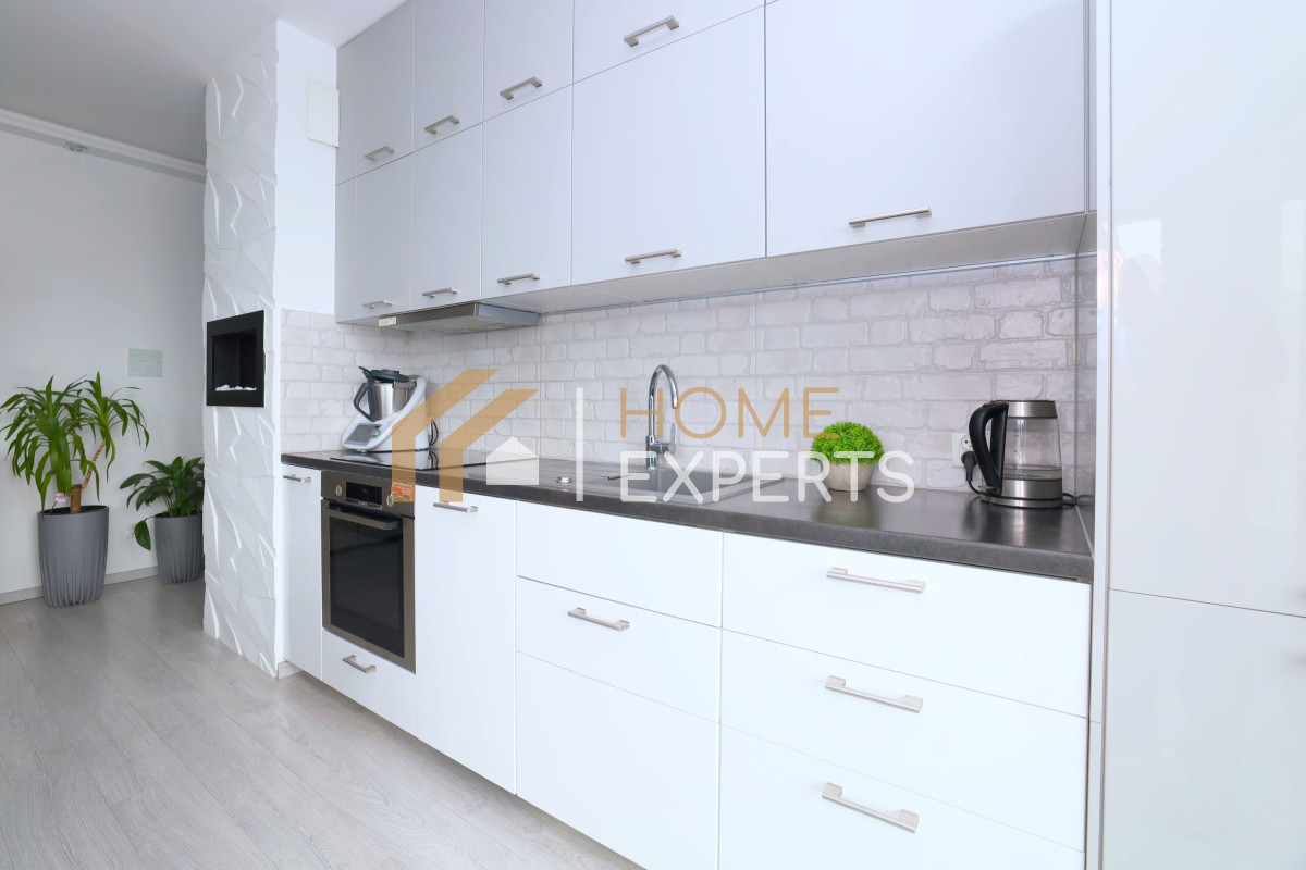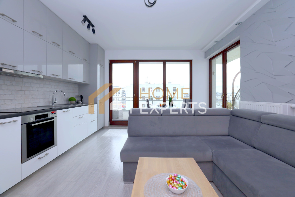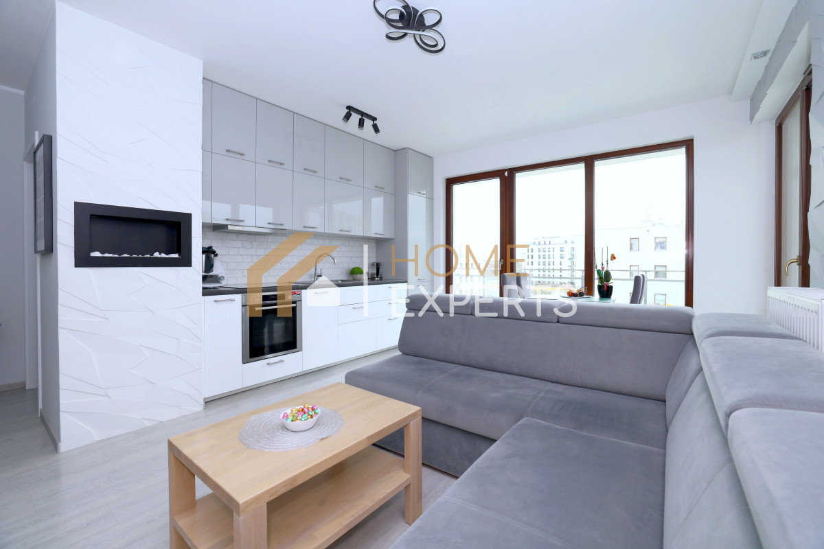 Mieszkanie utrzymane jest w doskonałej kondycji, wykończone w podwyższonym standardzie z dbałością o detale. W salonie znajduje się elegancki biokominek, tworzący przytulną atmosferę i podkreślający charakter wnętrza. Komfort użytkowania zwiększają nowoczesne, dotykowe włączniki światła i narożny taras.