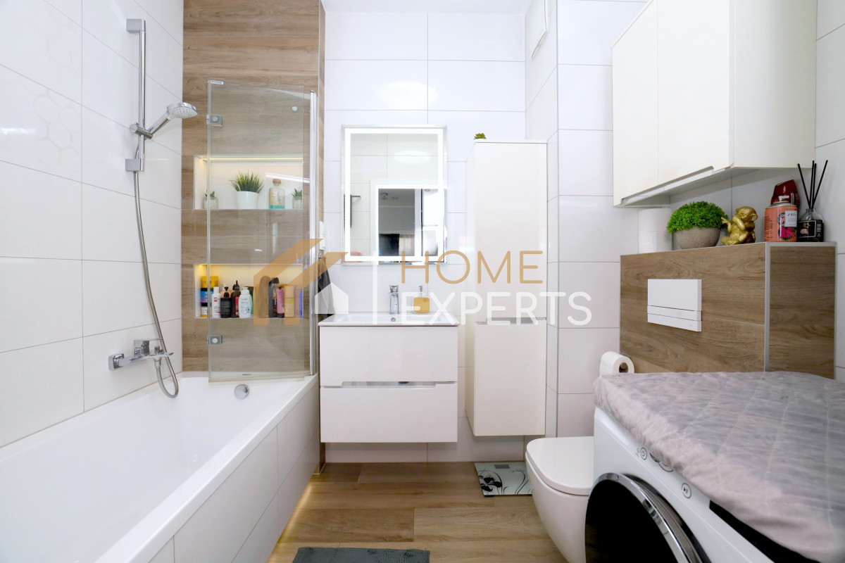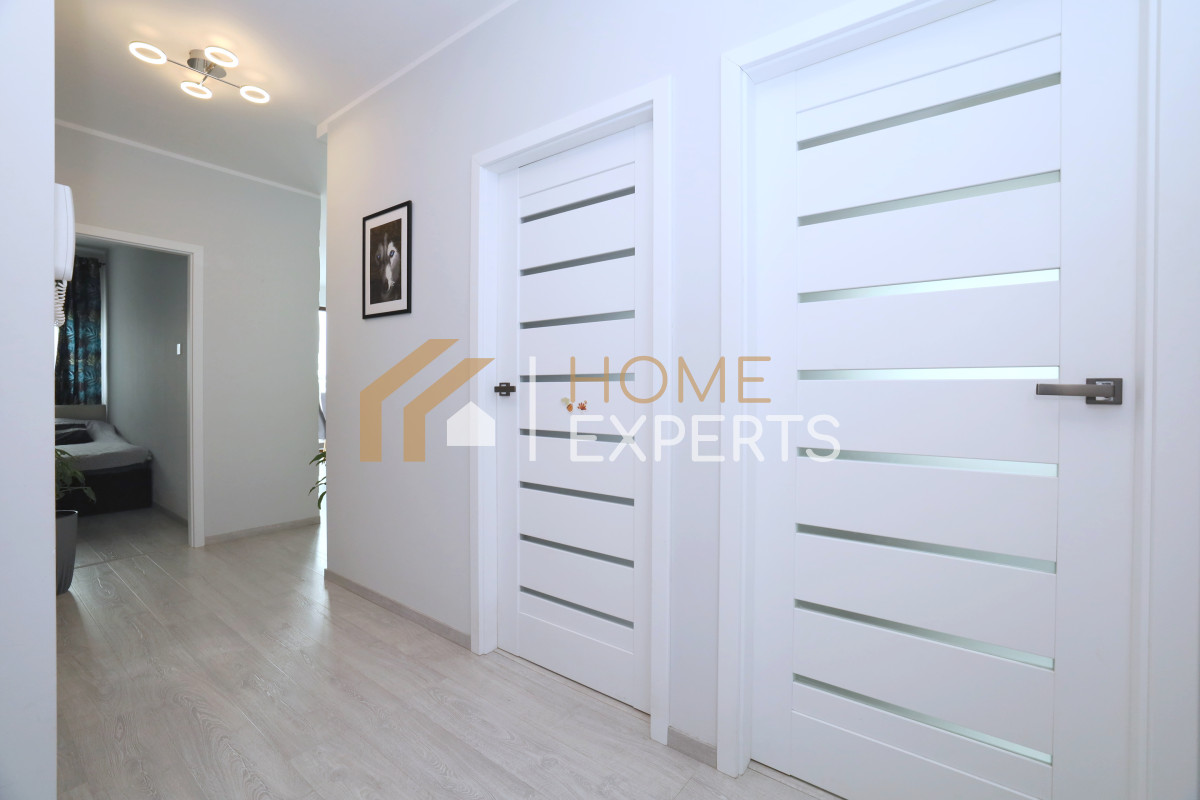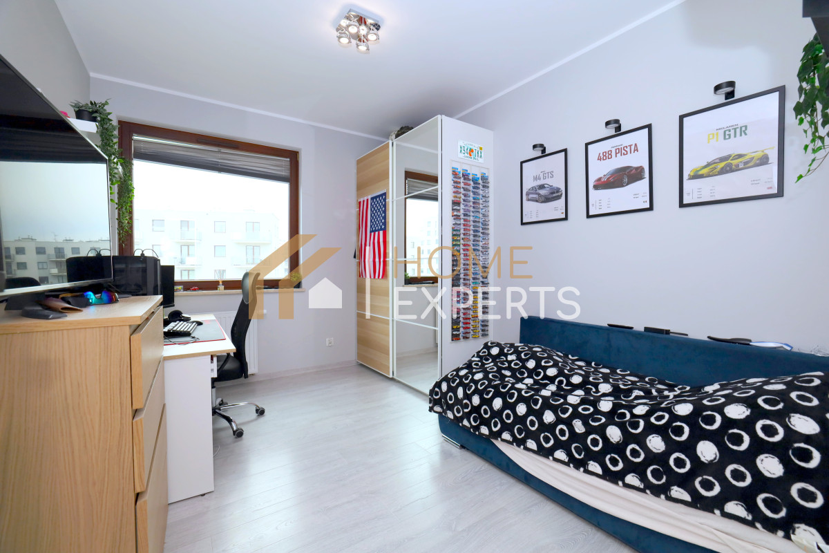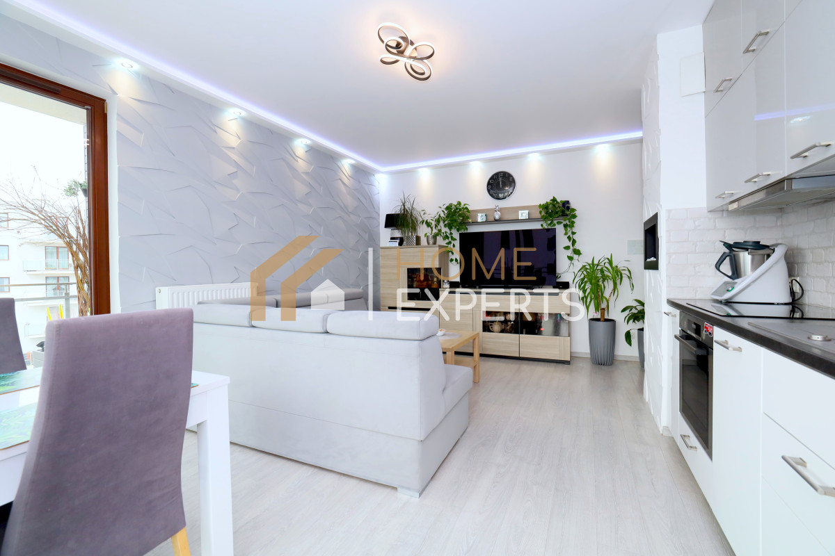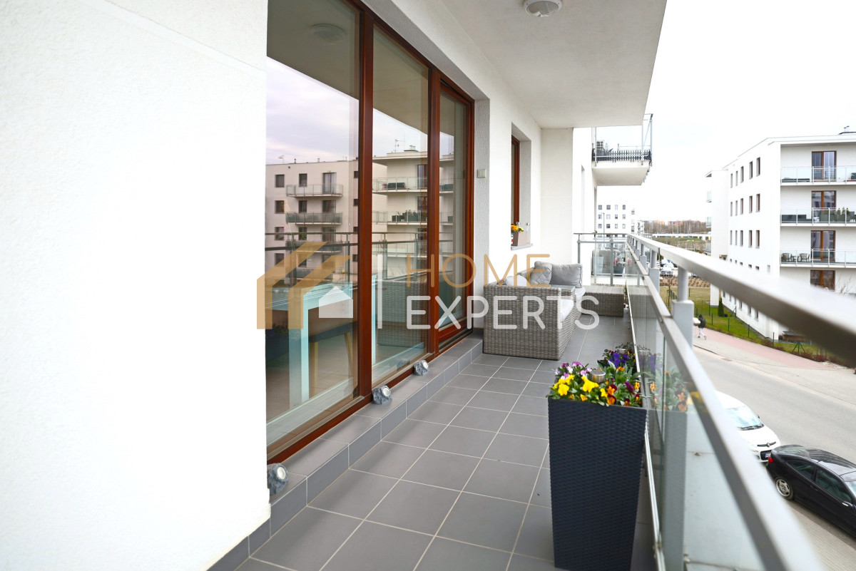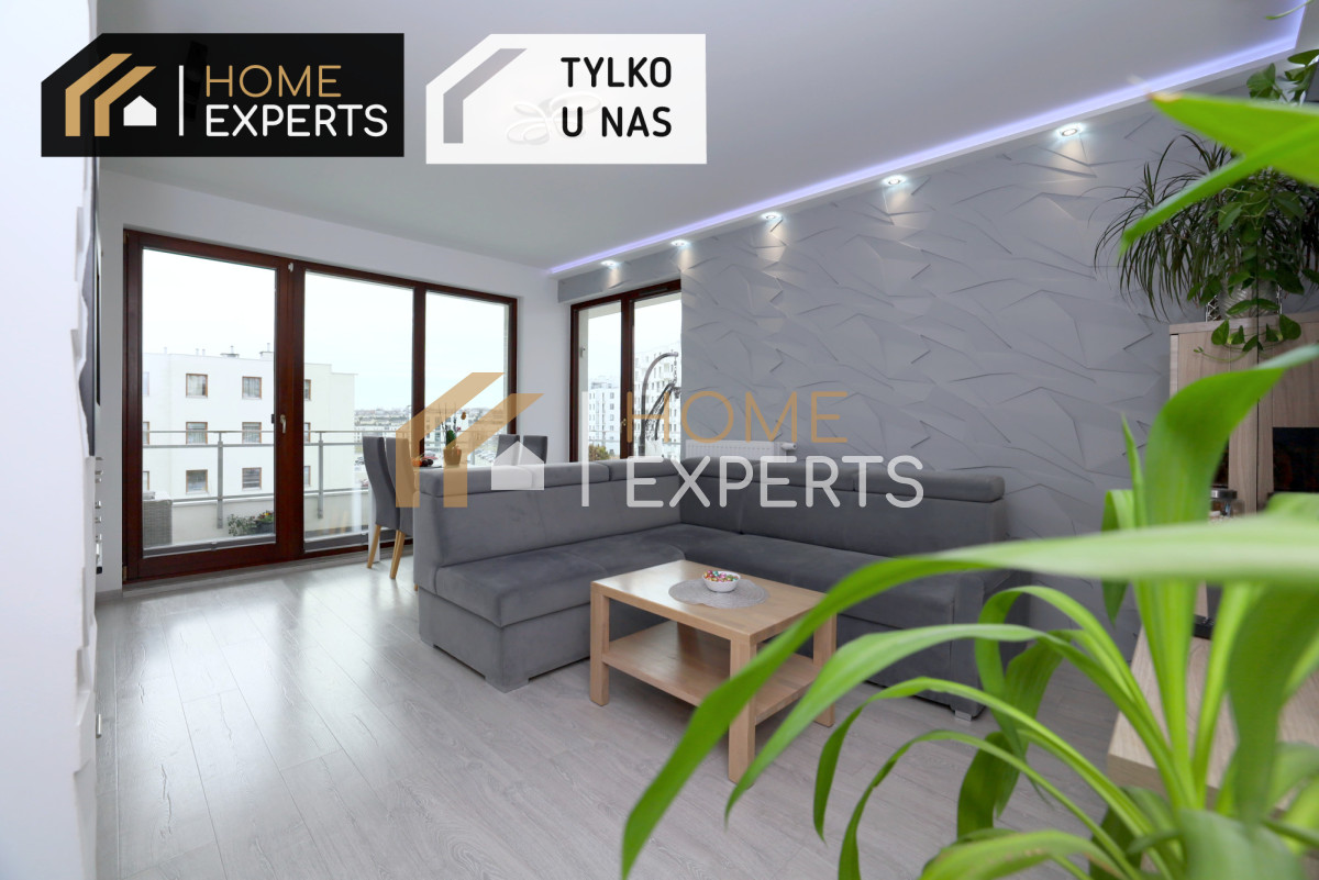 Mieszkanie utrzymane jest w doskonałej kondycji, wykończone w podwyższonym standardzie z dbałością o detale. W salonie znajduje się elegancki biokominek, tworzący przytulną atmosferę i podkreślający charakter wnętrza. Komfort użytkowania zwiększają nowoczesne, dotykowe włączniki światła i narożny taras.