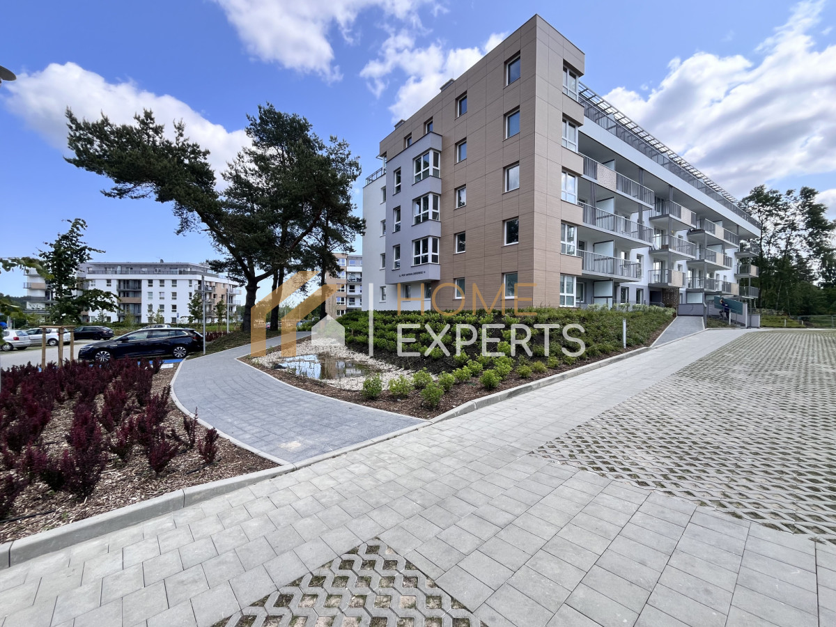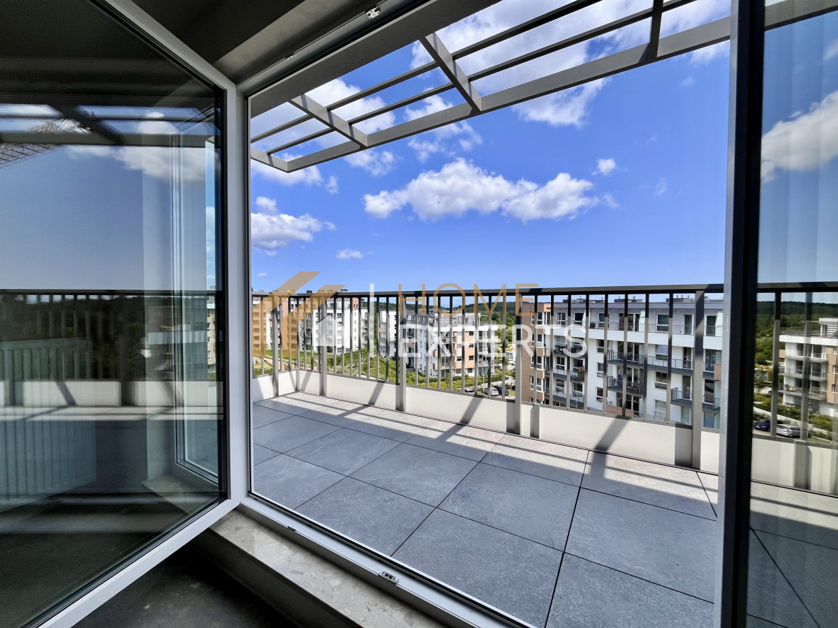Wyjątkowe trzypokojowe mieszkanie o bardzo funkcjonalnym układzie i niezwykle przyjemnym widoku z każdego z okien. Mieszkanie gotowe i odebrane, sprzedawane w stanie deweloperskim. Niezwykłą cechą mieszkania jest ogromny i słoneczny taras, na który dostać można się przez ogromne, przeszklone drzwi w salonie oraz z jednej z sypialni. Ponadto taras ten zlokalizowany jest na ostatnim pietrze budynku co gwarantuje ogromny komfort i intymność korzystania z niego oraz przepiękny widok na panoramę miasta i Trójmiejski Pak Krajobrazowy..