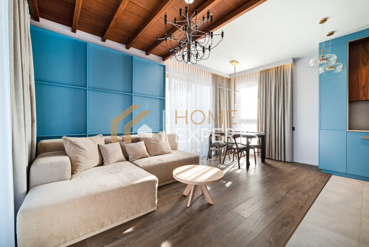 Całość została wykończona według aranżacji architekta w nowoczesnym, ale przytulnym stylu, z dbałością o każdy detal i przy wykorzystaniu wysokiej klasy materiałów