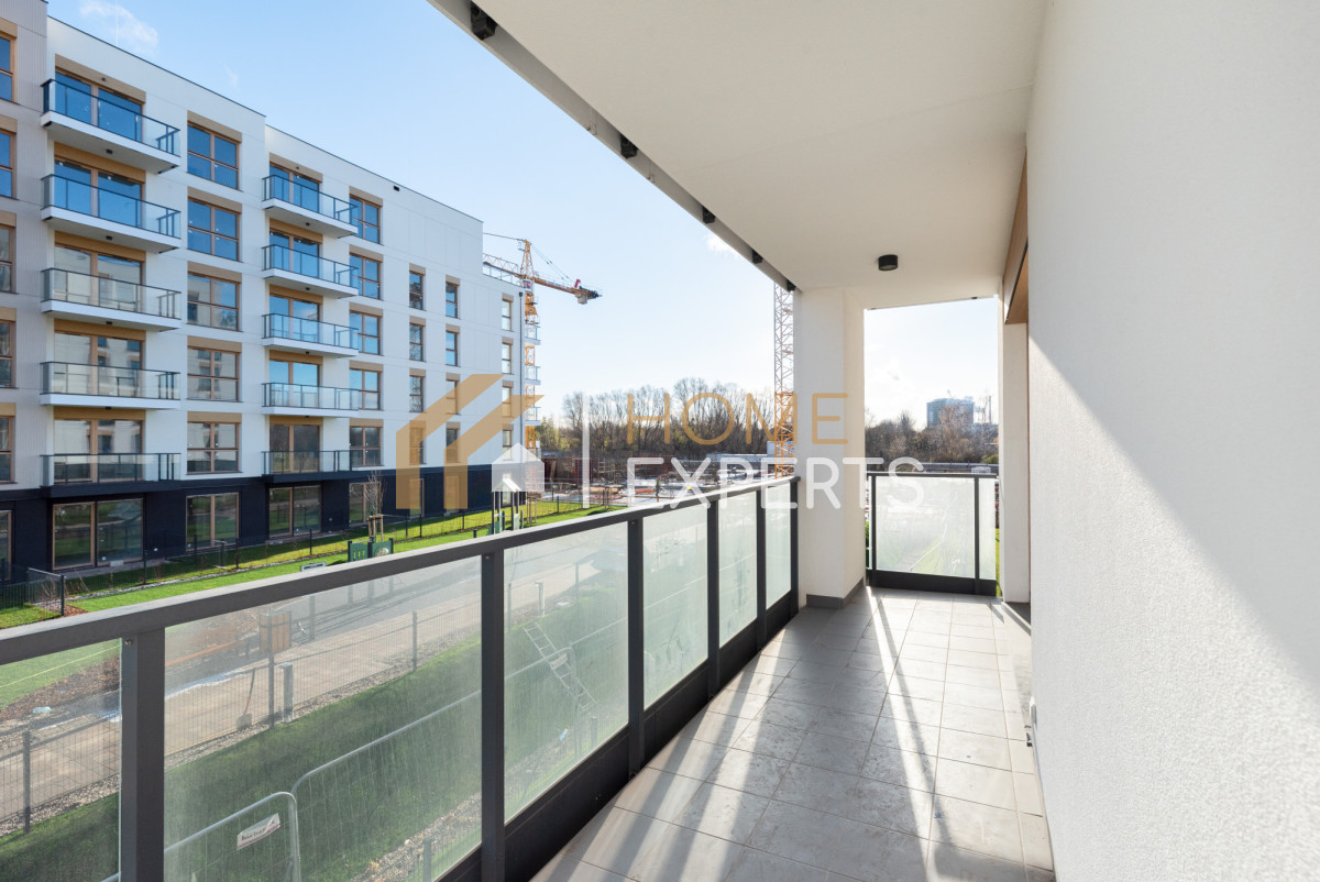 • Duży balkon/loggia (17 m2) z widokiem na osiedlową zieleń,