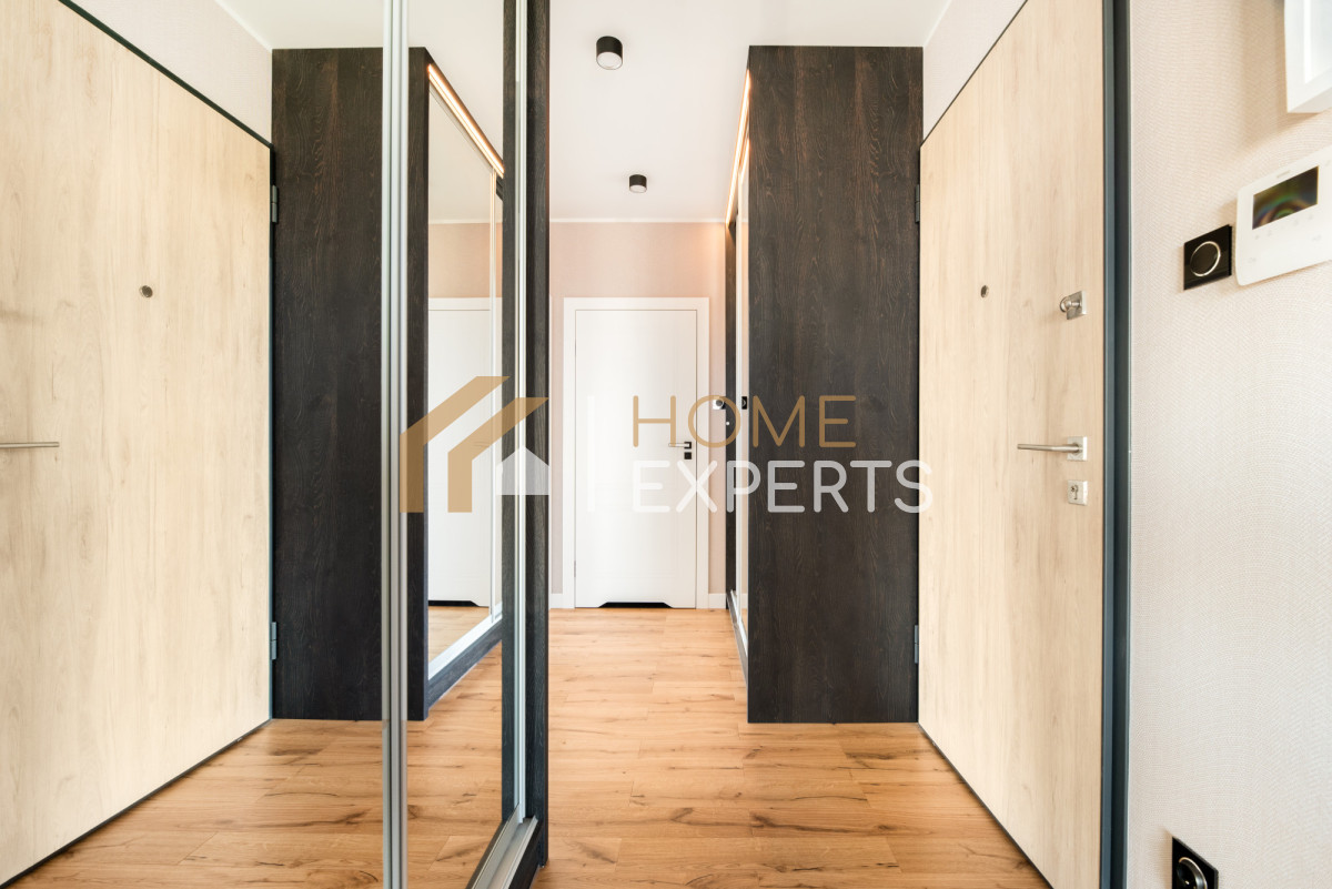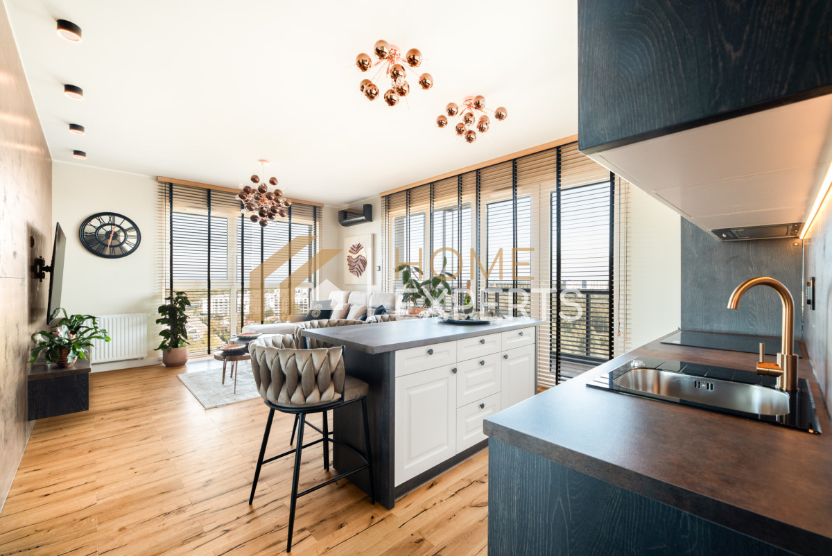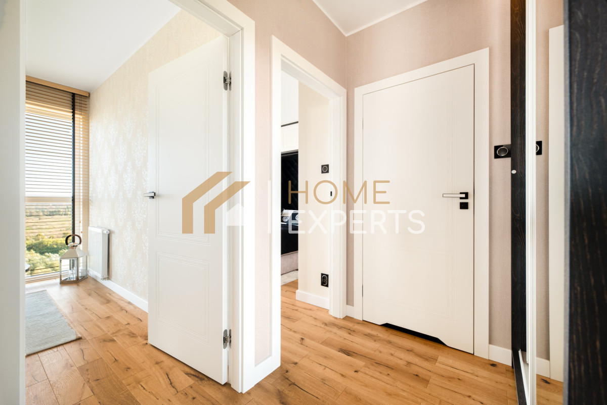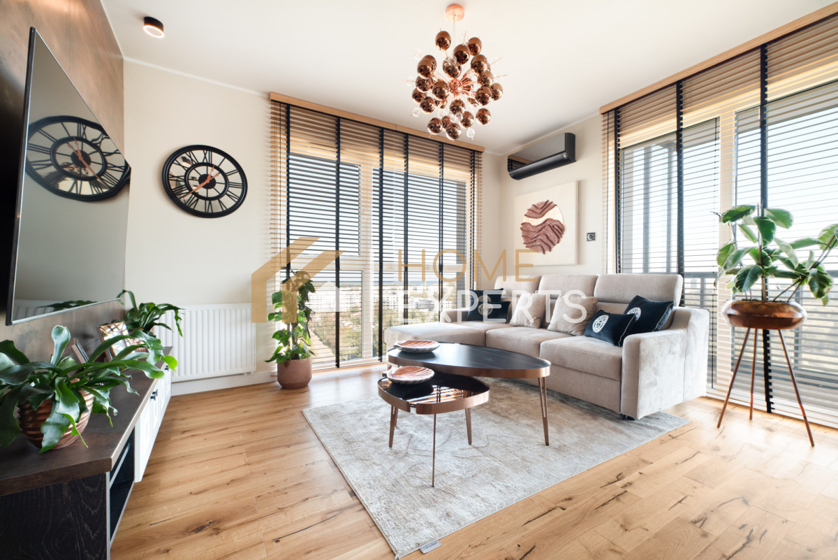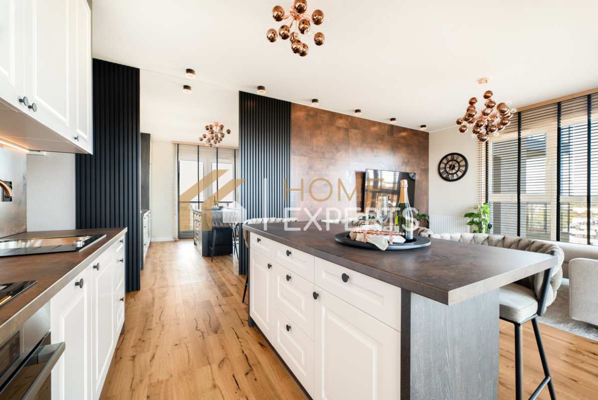 Wnętrza są urządzone w eleganckim, neutralnym stylu i w pełni wyposażone w wysokiej jakości sprzęt AGD w kuchni i łazience. Stan nieruchomości jest idealny - mieszkanie nigdy wcześniej nie było zamieszkałe.