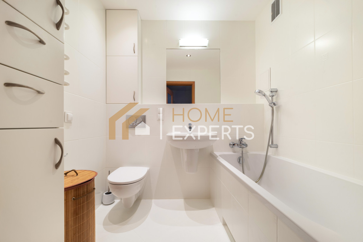Przestronna kuchnia wyposażona w komplet urządzeń i przestrzeń niezbędną do komfortowego przygotowywania posiłków, a także jedna z sypialni znajdują się po północno-wschodniej stronie. W orientacji południowo-zachodniej zaś, znajdziemy drugą sypialnię oraz serce mieszkania - okazały salon z wyjściem na zabudowaną rozsuwanymi szybami loggie, o niecodziennym kształcie z wykuszem. Okna obu stron mieszkania wychodzą na zieleń osiedla - szczególnie z balkonu widok jest kojący i miły. Łazienka wyposażona jest w wannę zachęcającą do wieczornego relaksu.