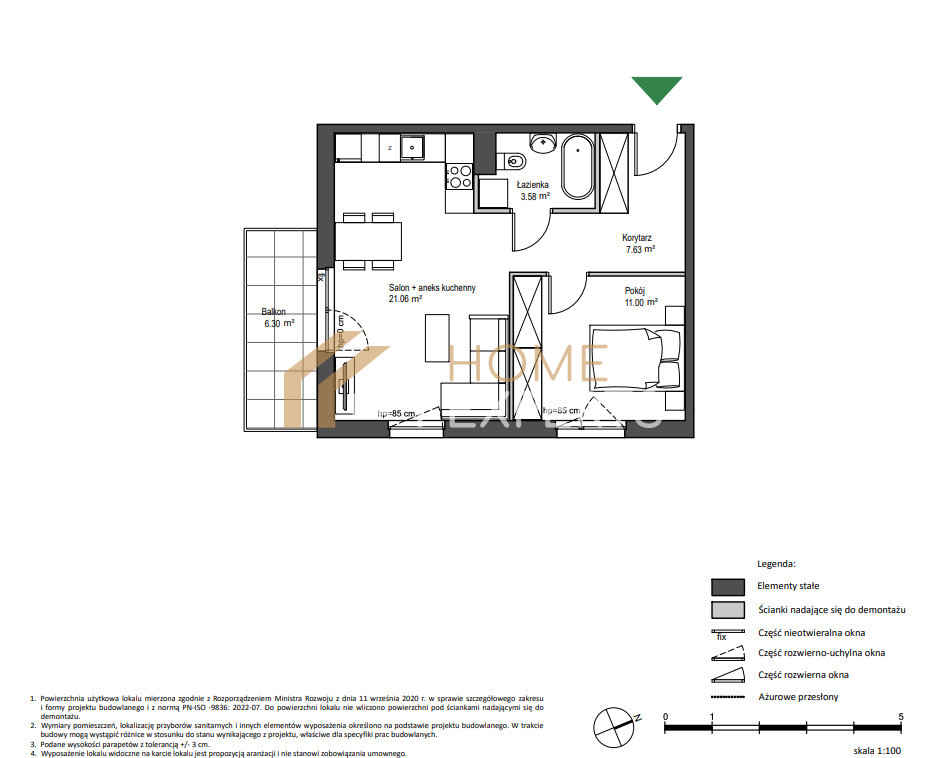 - Salon z aneksem kuchennym - 21,06 m²