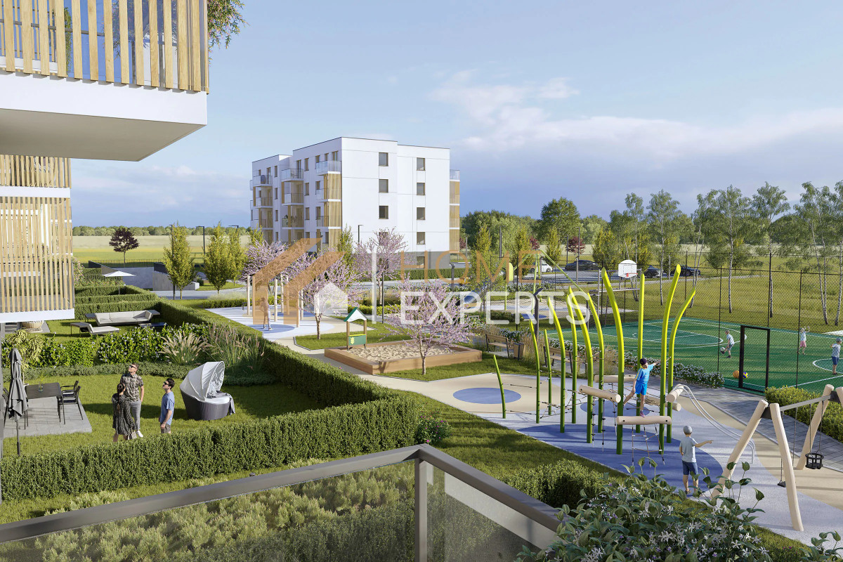 Na terenie osiedla deweloper postarał się o przestrzenie dla dzieci (plac zabaw, boisko), miejsca sąsiedzkich spotkań oraz strefę dla psów.