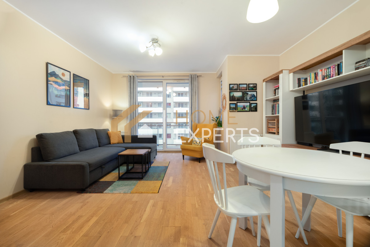 - przestronnego salonu z aneksem kuchennym oraz wyjściem na duży balkon (24,6 m2)