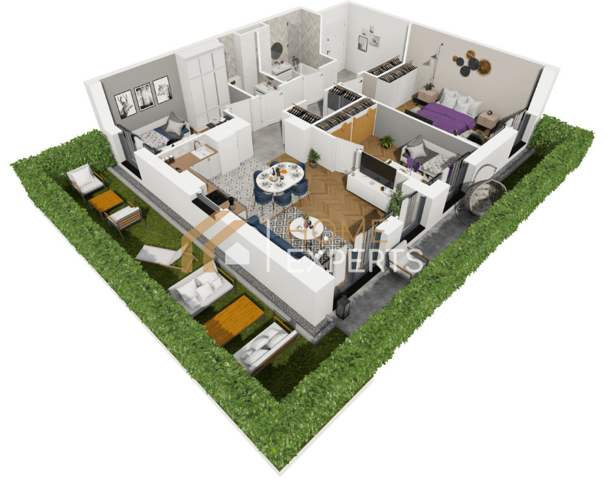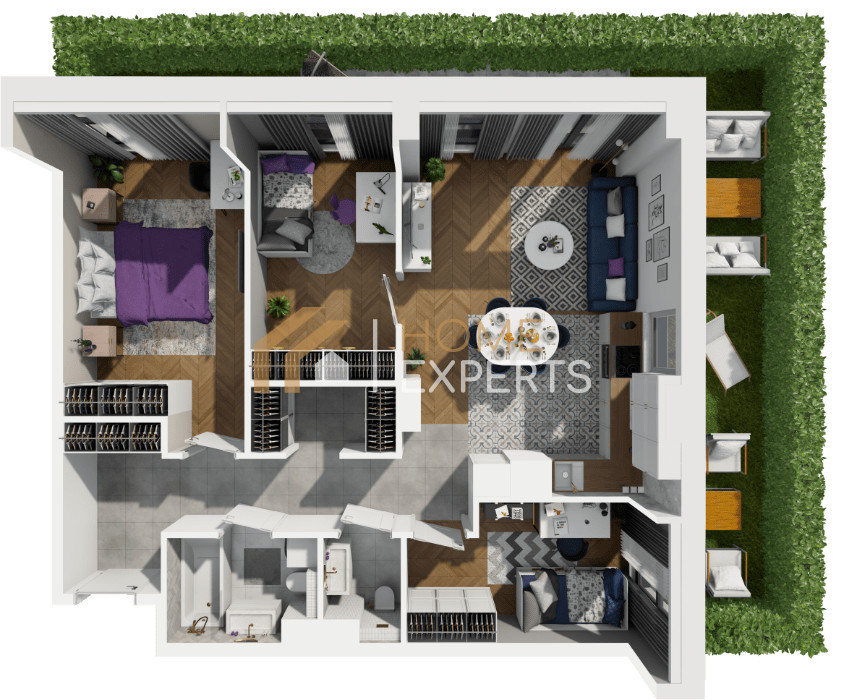 Tarasy wybrukowane kostką z zielonymi ogródkami o powierzchni aż do 104 mkw. będą przynależeć do mieszkań dostępnych na kondygnacjach parterowych.