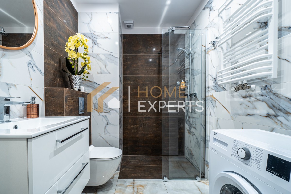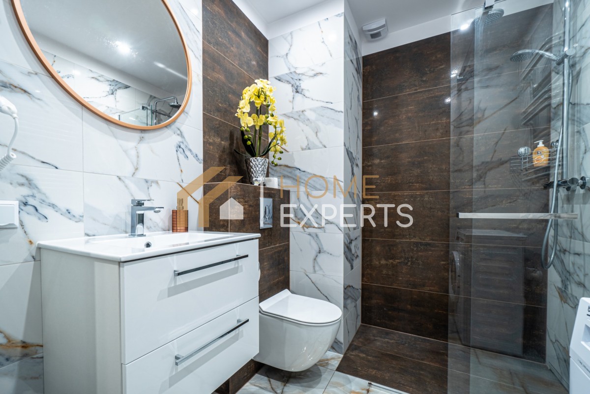 Całość została wykończona przytulnym stylu, przy wykorzystaniu trwałych materiałów. Mieszkanie jest czyste i schludne, w pełni wyposażone, gotowe do zamieszkania lub wynajmu.