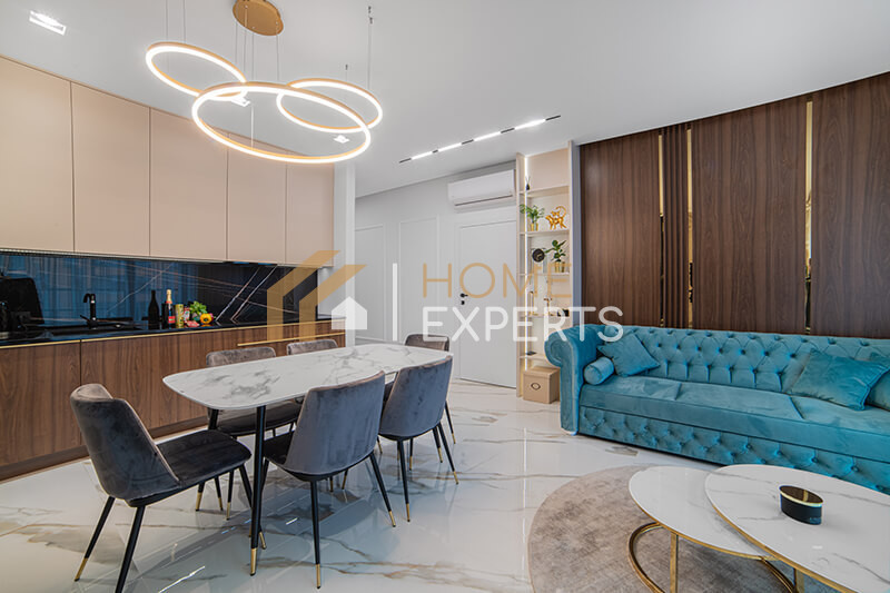 Apartament został wykończony w najwyższym standardzie, z dbałością o detale, jakość materiałów i spójność stylistyczną.