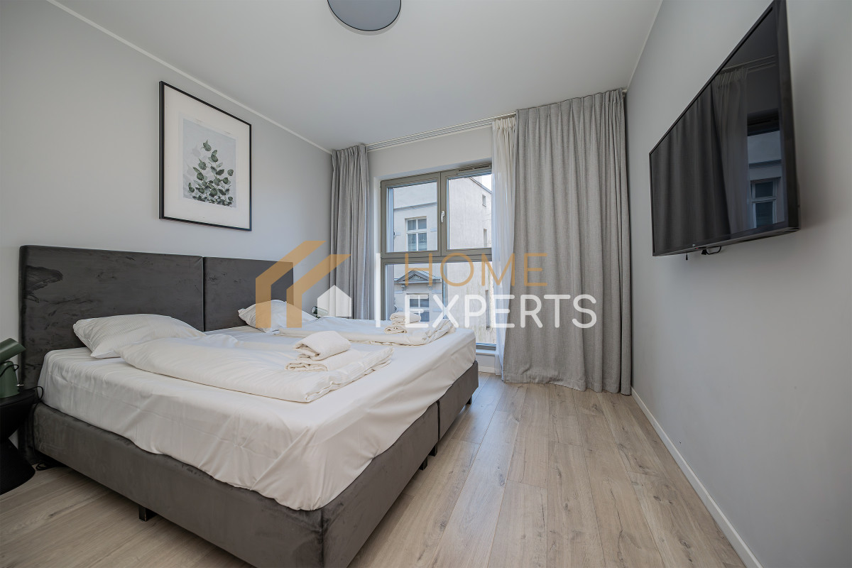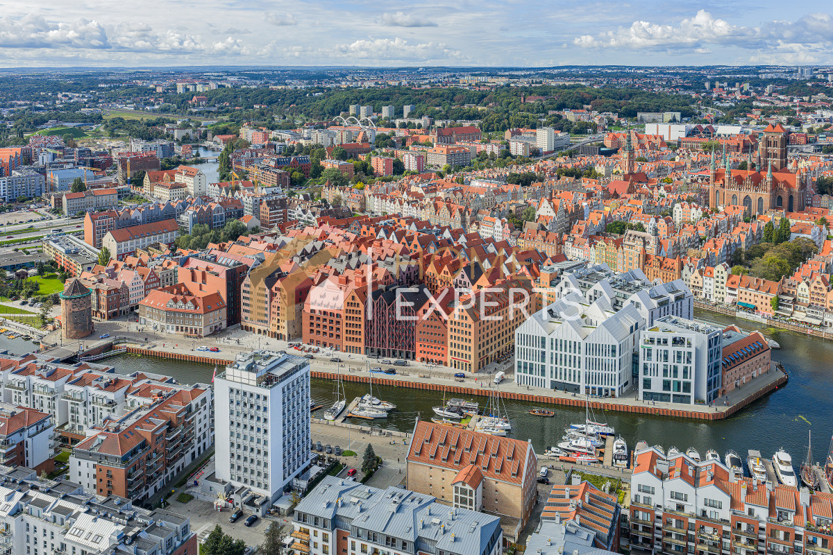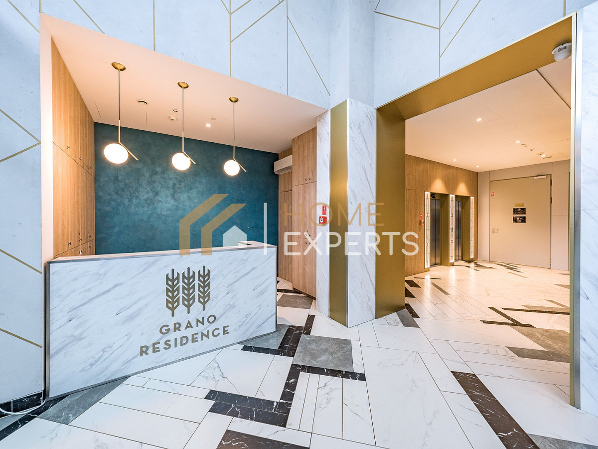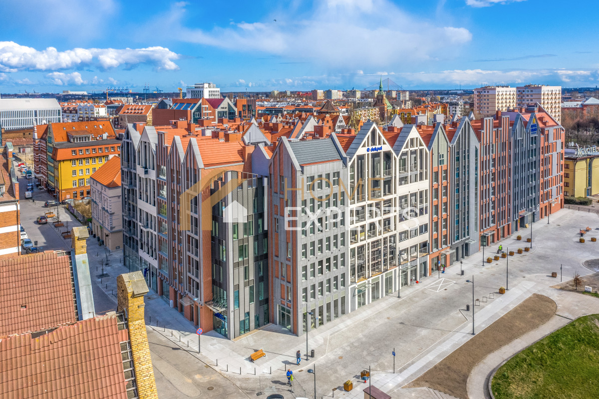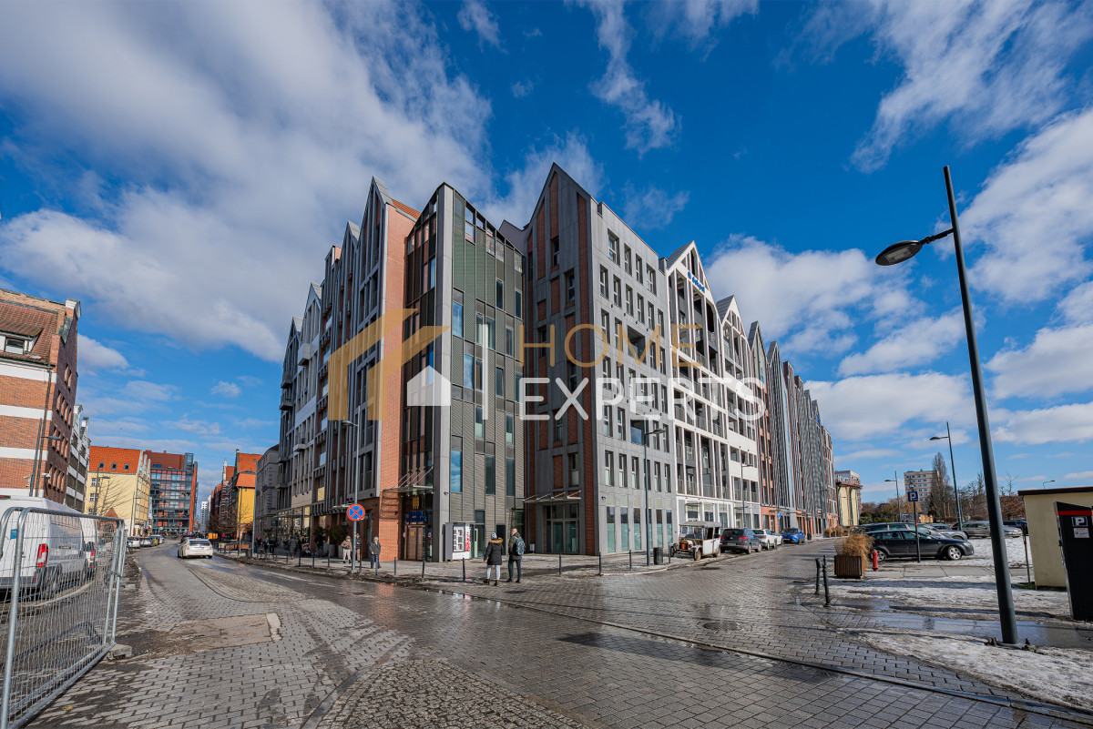 An apartment located on the 2nd floor of the Grano Residence condominium on Granary Island in Gdańsk, in the Śródmieście district. Two rooms designed by an architect, windows facing north, view of the city. Finishing standard: Walls - smooth plaster; Floors - panels; Windows - wooden; Window sills - conglomerate. Security: anti-burglary doors, intercom, monitoring. Equipment offered in the price: to be agreed. Ancillary areas: storage compartment (PLN 20,000). Description of the building: six-story Grano Residence apartment building, commissioned in 2020. The building features a swimming pool, jacuzzi, fitness zone, saunas, gym and restaurant (there are only 4 such facilities in downtown Gdańsk). Location description: Transportation: city bus lines, tram lines, SKM fast city rail. Distance from Gdańsk city center: approx. 500m. Recreation: swimming pool, fitness, cinema, bowling alley, river, ice rink, sports facility, park, children's playground, gym, bicycle path, theater. Services: pharmacy, bank, ATM, marketplace, shopping center, pastry shop, delicatessen, hairdresser, florist, supermarket, bakery, laundry, clinic, restaurant, beauty salon, 24-hour store, grocery store, dentist, veterinarian. Institutions: library, middle school, church, post office, preschool, elementary school, high school, university, nursery. Available utilities: cold water, hot water, cable TV, telephone, electricity, sewage, internet. Heating: district heating.
