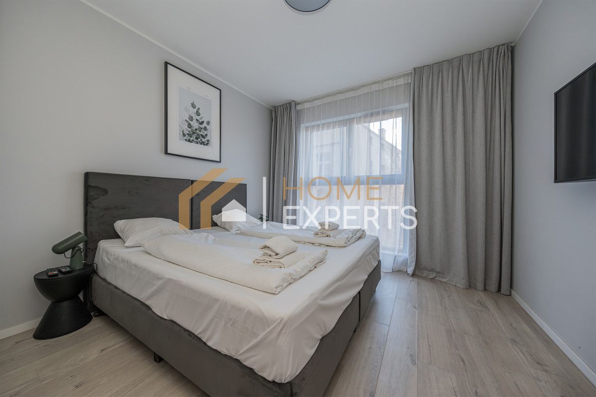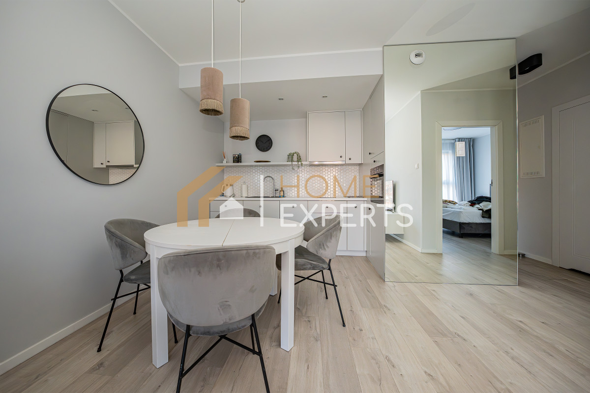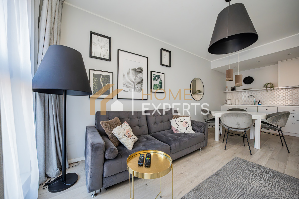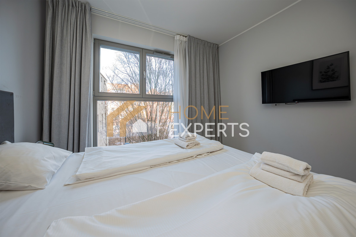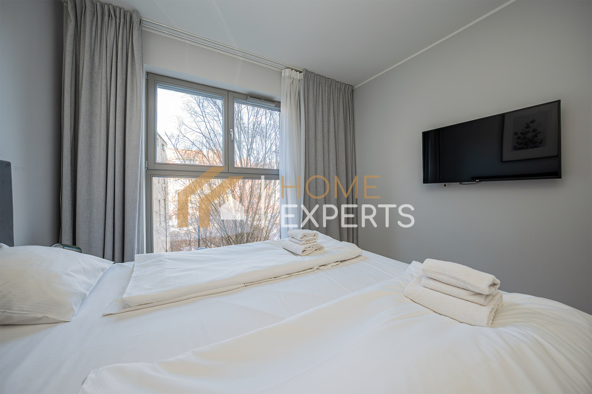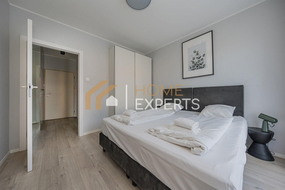 An apartment located on the 2nd floor of the Grano Residence condominium on Granary Island in Gdańsk, in the Śródmieście district. Two rooms designed by an architect, windows facing north, view of the city. Finishing standard: Walls - smooth plaster; Floors - panels; Windows - wooden; Window sills - conglomerate. Security: anti-burglary doors, intercom, monitoring. Equipment offered in the price: to be agreed. Ancillary areas: storage compartment (PLN 20,000). Description of the building: six-story Grano Residence apartment building, commissioned in 2020. The building features a swimming pool, jacuzzi, fitness zone, saunas, gym and restaurant (there are only 4 such facilities in downtown Gdańsk). Location description: Transportation: city bus lines, tram lines, SKM fast city rail. Distance from Gdańsk city center: approx. 500m. Recreation: swimming pool, fitness, cinema, bowling alley, river, ice rink, sports facility, park, children's playground, gym, bicycle path, theater. Services: pharmacy, bank, ATM, marketplace, shopping center, pastry shop, delicatessen, hairdresser, florist, supermarket, bakery, laundry, clinic, restaurant, beauty salon, 24-hour store, grocery store, dentist, veterinarian. Institutions: library, middle school, church, post office, preschool, elementary school, high school, university, nursery. Available utilities: cold water, hot water, cable TV, telephone, electricity, sewage, internet. Heating: district heating.