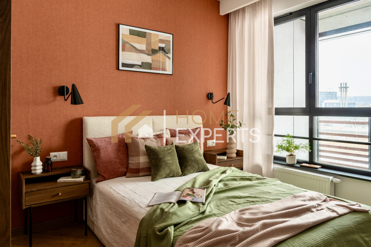 • Wnętrze wykończone w nowoczesnym stylu z industrialnymi akcentami i ciepłymi dodatkami, nawiązujące do klimatu Młodego Miasta i terenów postoczniowych