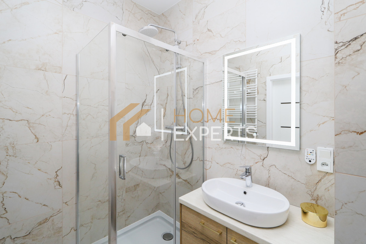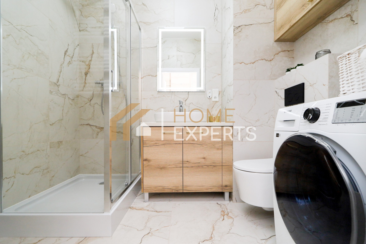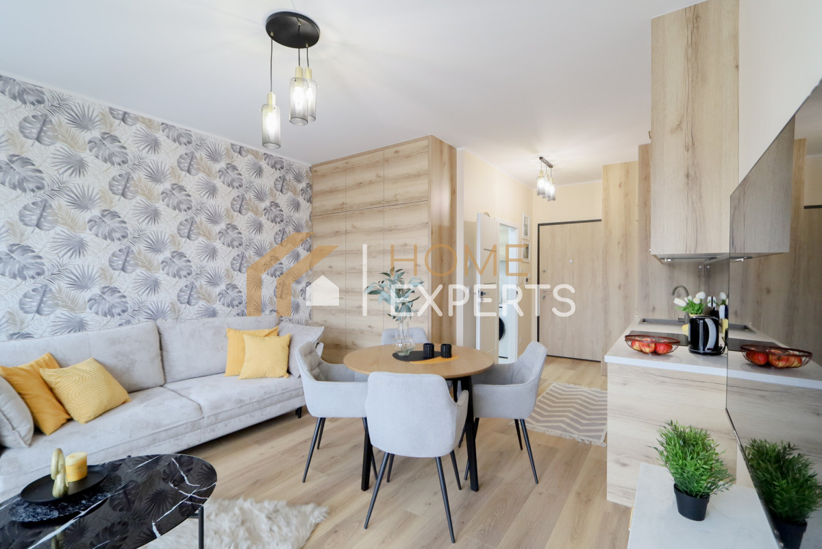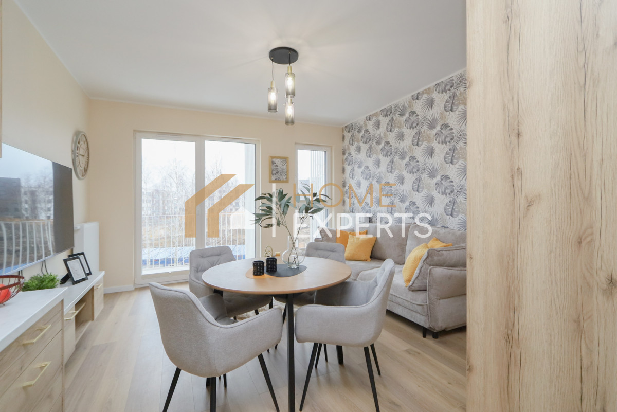 Mieszkanie zostało urządzone z dbałością o detale - w pełni wyposażona kuchnia (sprzęt AGD), meble, telewizor, pralko-suszarka, gotowa łazienka. Wnętrze jest jasne, funkcjonalne i gotowe do natychmiastowego zamieszkania lub wynajmu - bez dodatkowych kosztów.