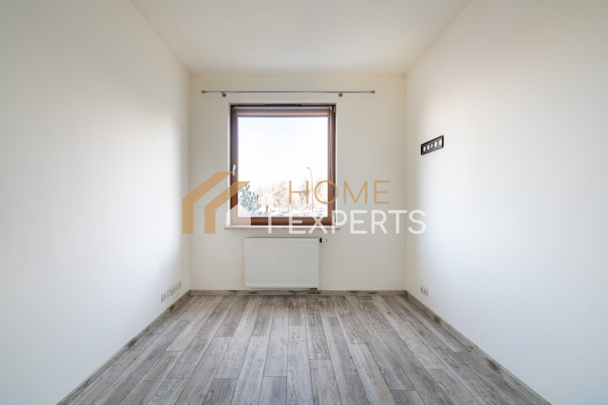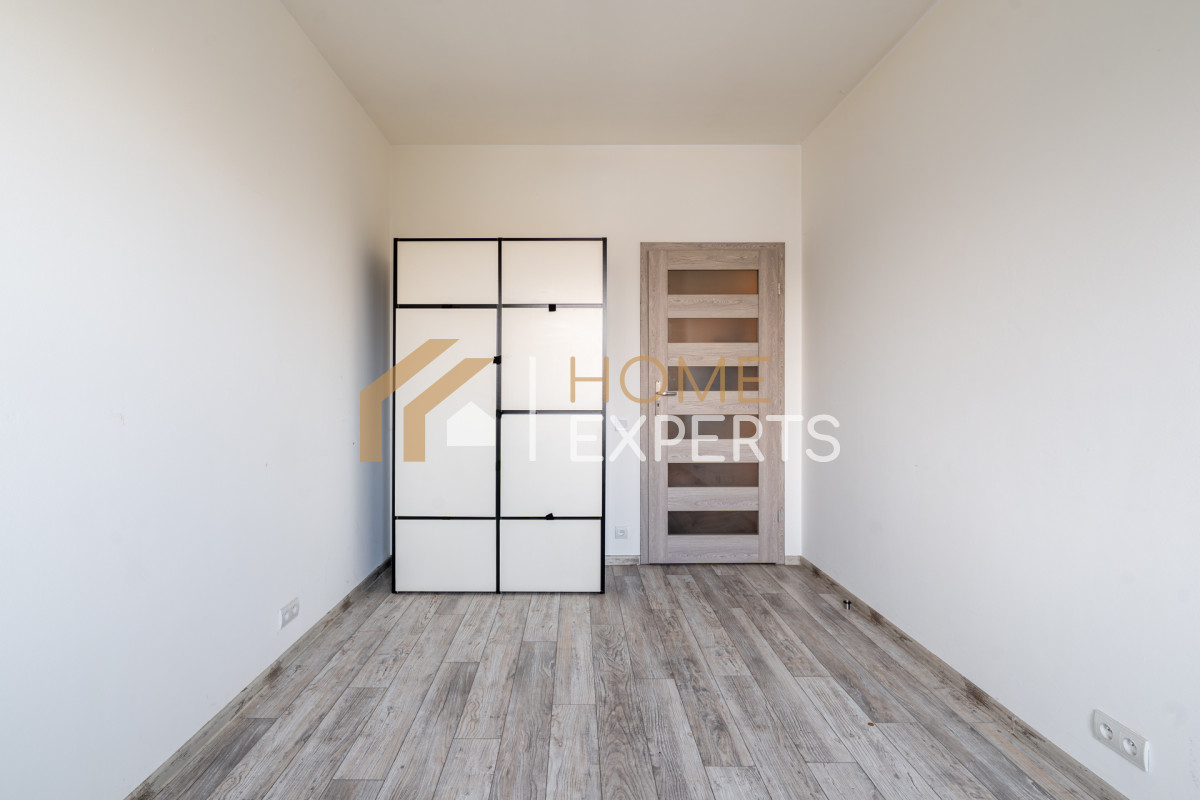 W sypialni o bardzo przyzwoitych rozmiarach znajduje się pojemna szafa. Podczas uzupełniania umeblowania z łatwością można zaaranżować miejsce do pracy zdalnej.