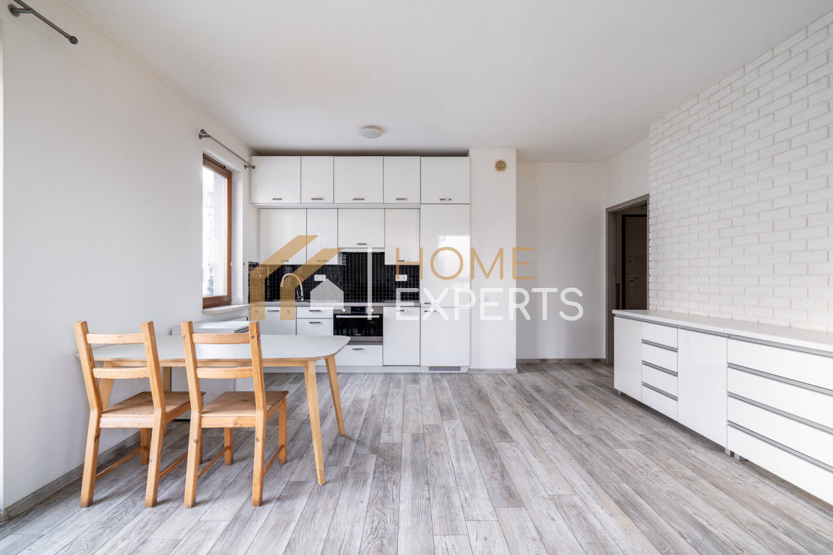 Mieszkanie jest solidnie i schludnie wykończone. Zabudowa kuchenna jest funkcjonalna. W przestronnym salonie znalazło się także miejsce na stół jadalniany oraz część wypoczynkową.