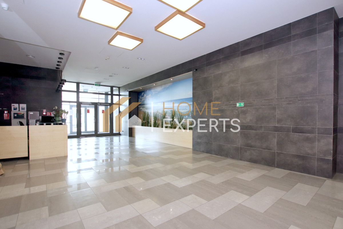 Gdańsk, Zaspa. Przestronny 2 pokojowy apartament na X piętrze w nowoczesnym budynku z 2014 roku, z podwyższonym standardem części wspólnych i z recepcją.