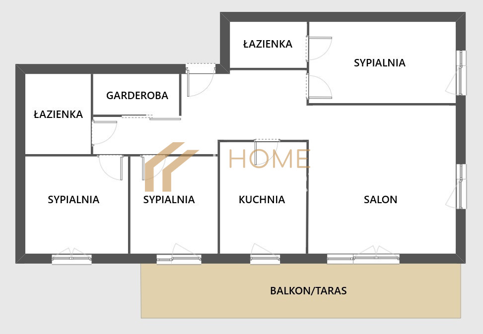 Liczba pokoi: 4 (3 sypialnie + salon z aneksem)