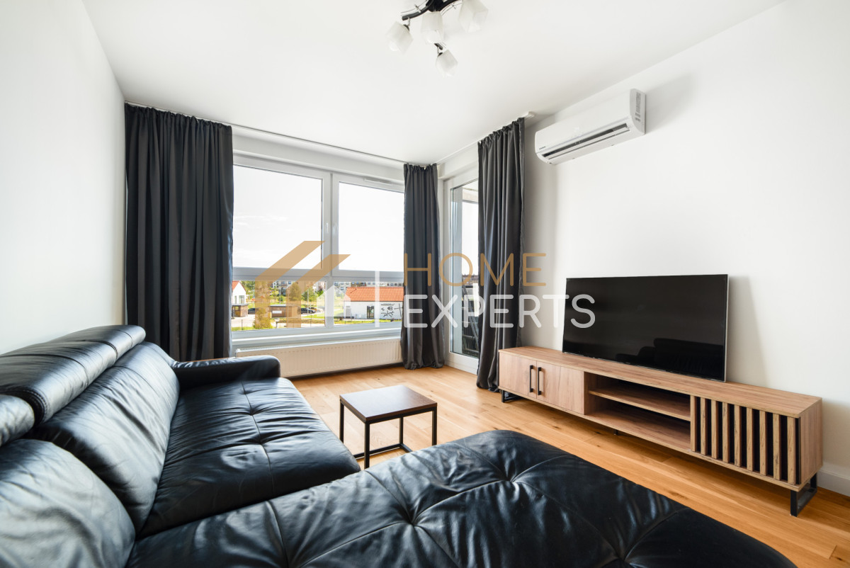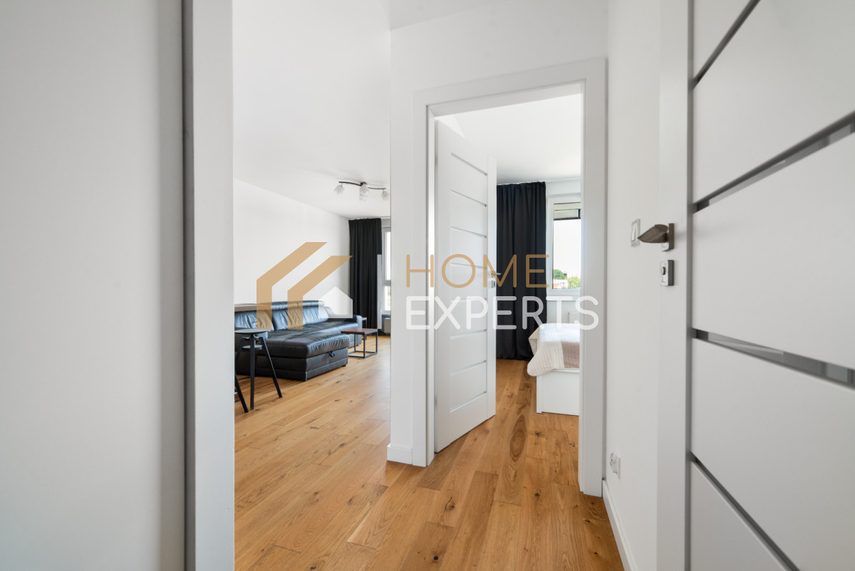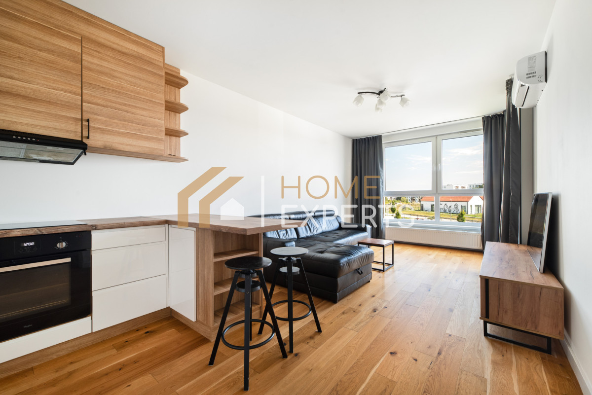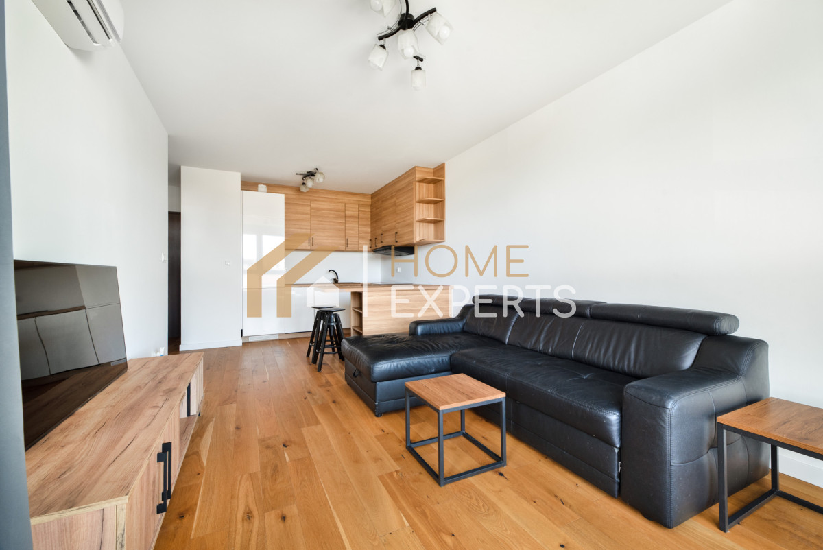 • Salon z aneksem kuchennym - w cenie zabudowa kuchni z pełnym sprzętem AGD (zmywarka, płyta indukcyjna, okap, lodówka), hoker, klimatyzacja