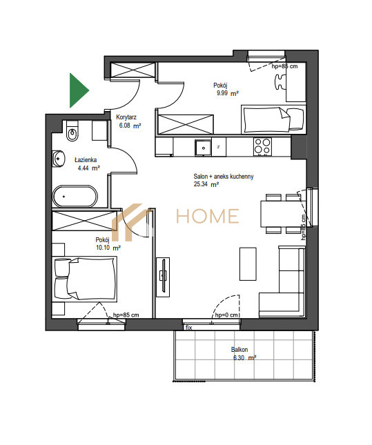 o Pokój 1: 9,99 m²
