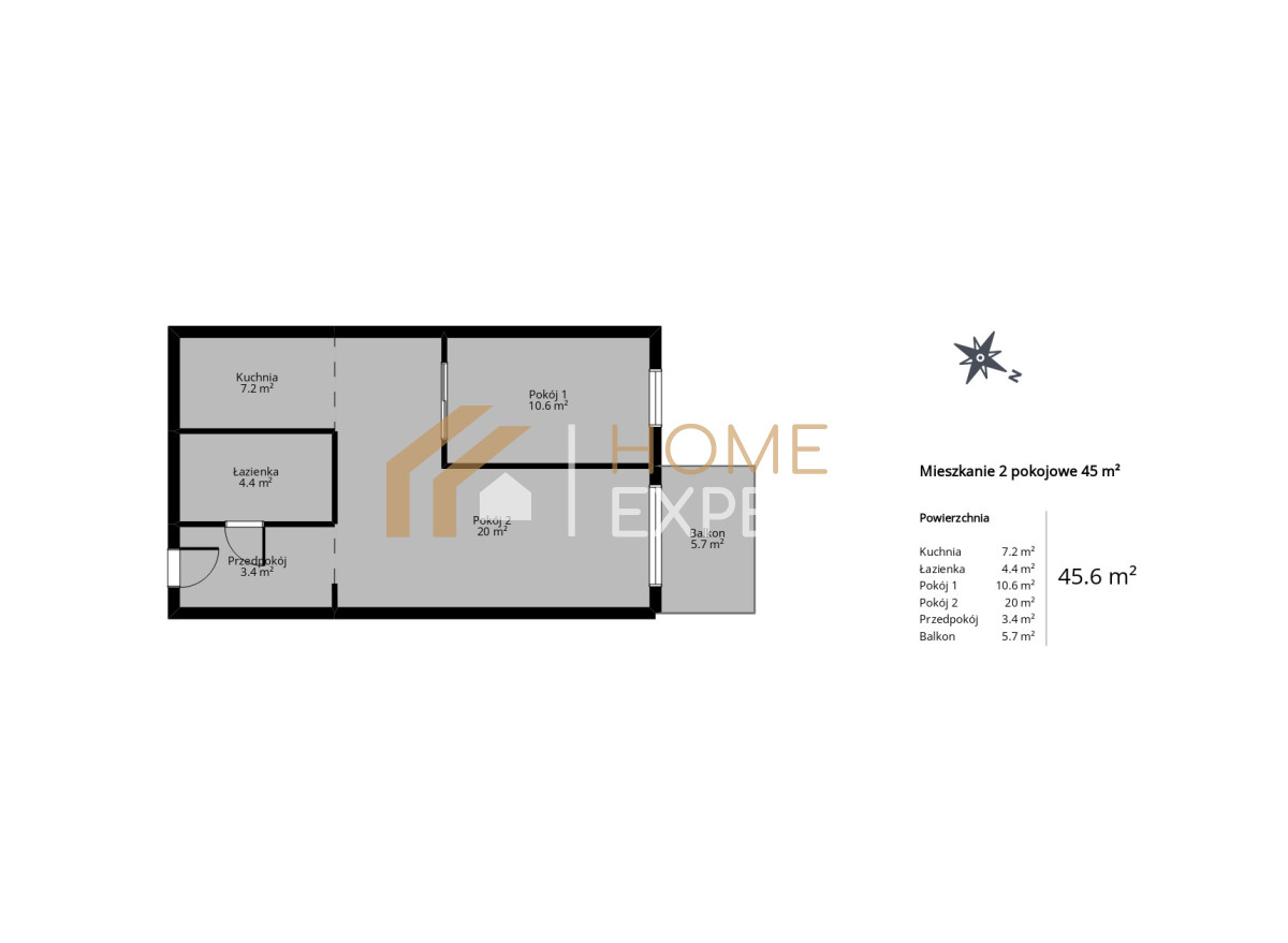 To mieszkanie o powierzchni 45,6 m2 składa się z: