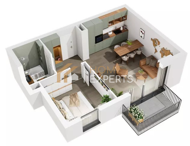 Mieszkanie składa się z przestronnego salonu z wyjściem na balkon, oddzielnej sypialni, funkcjonalnej kuchni oraz łazienki. Ekspozycja okien na wschód zapewnia przyjemne, naturalne światło w pierwszej części dnia — idealne na poranną kawę w promieniach słońca. Lokal jest jasny i dobrze doświetlony.