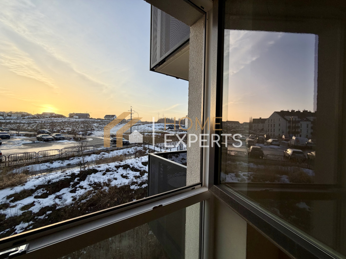Okna oraz balkon wychodzą na stronę wewnętrzną osiedla, co zapewnia ciszę i komfort.