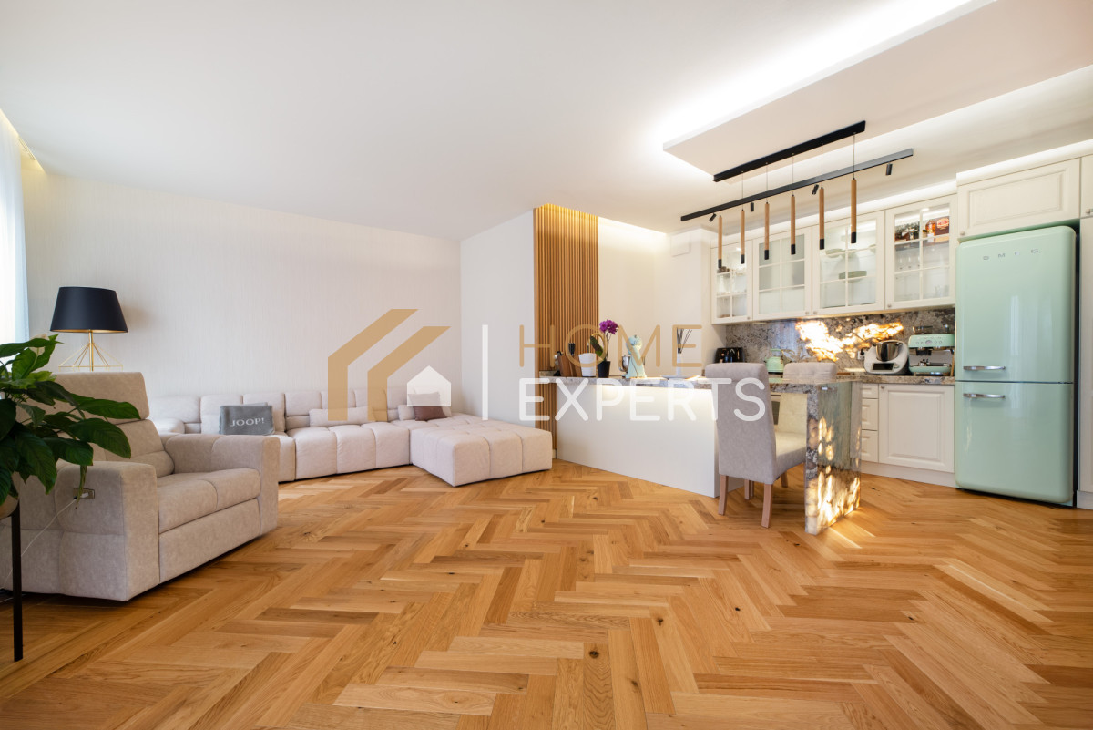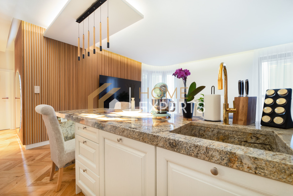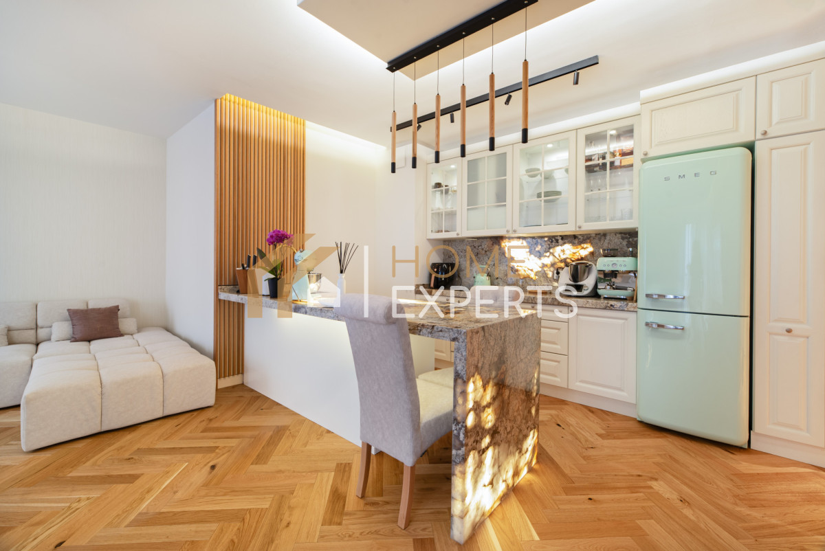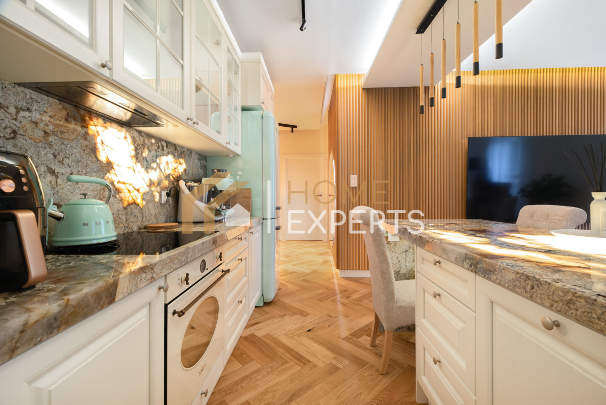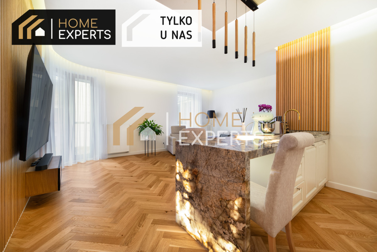 - Wysoki standard wykończenia mieszkania - dębowe podłogi, Marmurowe blaty,