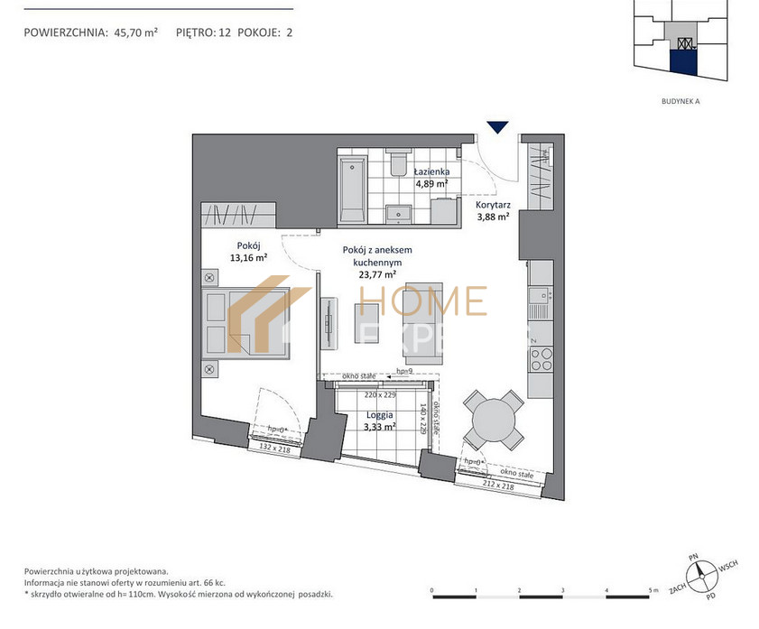 - Powierzchnia:45,70 m2