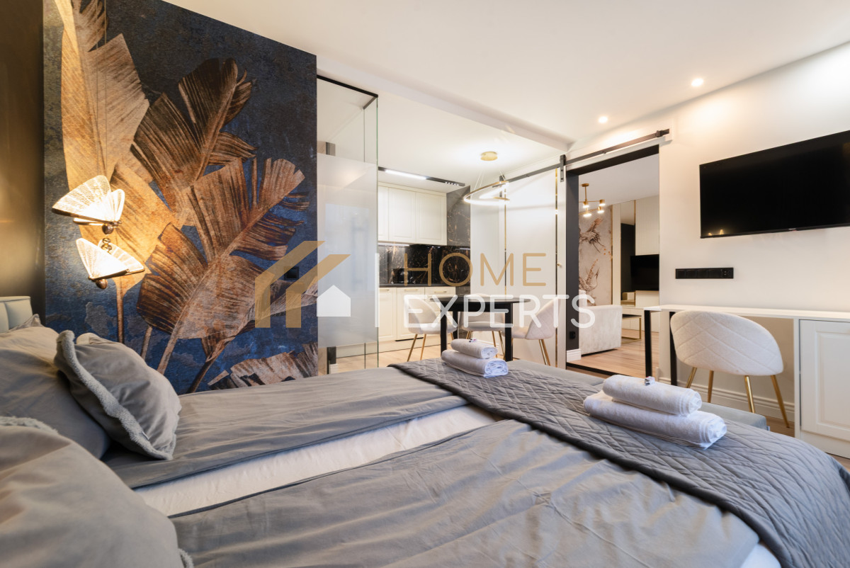 Mieszkanie zostało przystosowane do najmu krótkoterminowego i aktualnie jest podzielone na dwa w pełni niezależne lokale, co znacząco zwiększa jego potencjał dochodowy i elastyczność wykorzystania.