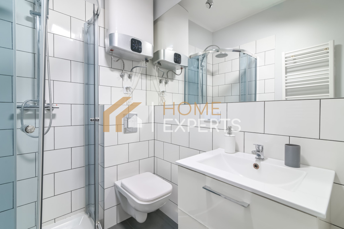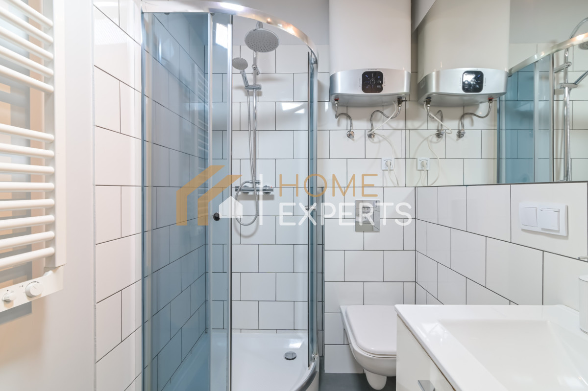 - łazienką z prysznicem, toaletą, umywalką, grzejnikiem oraz bojlerem