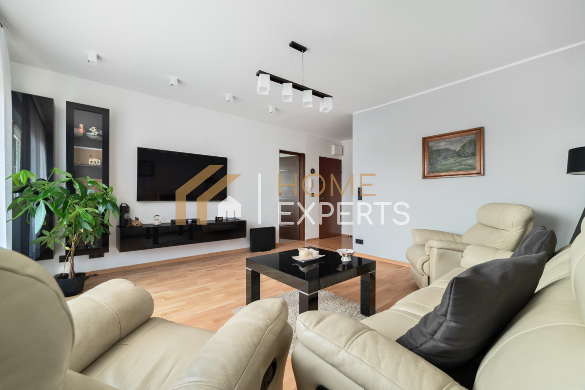 ✅ Przestronnego salonu z wyjściem na duży słoneczny i zapewniający prywatność balkon/loggię, z widokiem na estetycznie zagospodarowane tereny zielone,